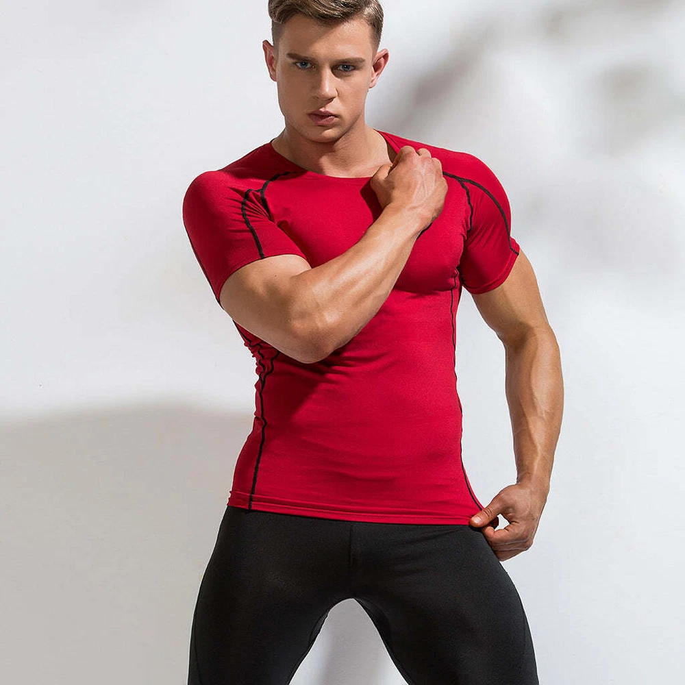 Product information: Material: polyester fiber Style: sports fashion Features:Comfortable and breathable Colour: red, black, blue, dark gray, dark blue, gray Size Information: Size Length Bust Hem S 64 84 80 M 66 88 84 L 68 92 88 XL 70 96 92 2XL 72 100 96 Note: 1. Asian sizes are 1 to 2 sizes smaller than European and American people. Choose the larger size if your size between two sizes. Please allow 2-3cm differences due to manual measurement. 2. Please check the size chart carefully before you buy the item, if you don't know how to choose size, please contact our customer service. 3.As you know, the different computers display colors differently, the color of the actual item may vary slightly from the following images. Packing list: Sports short sleeve*1 Product Image: