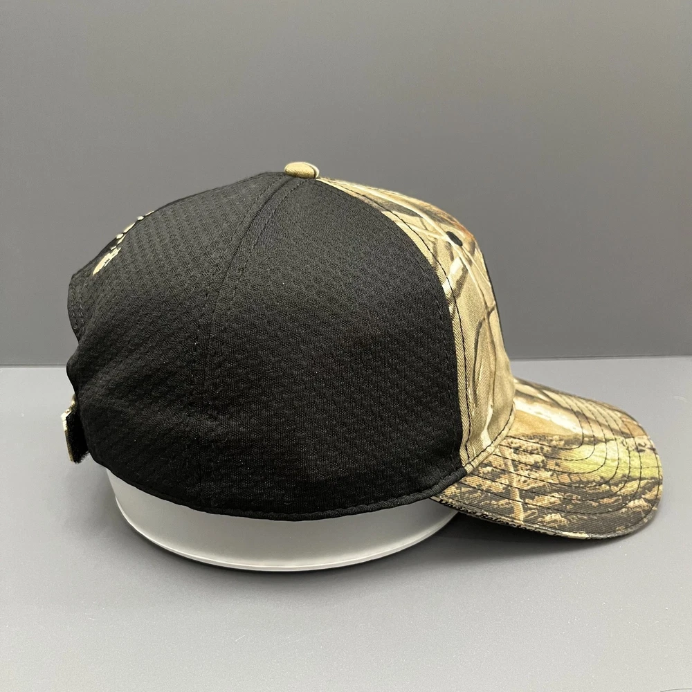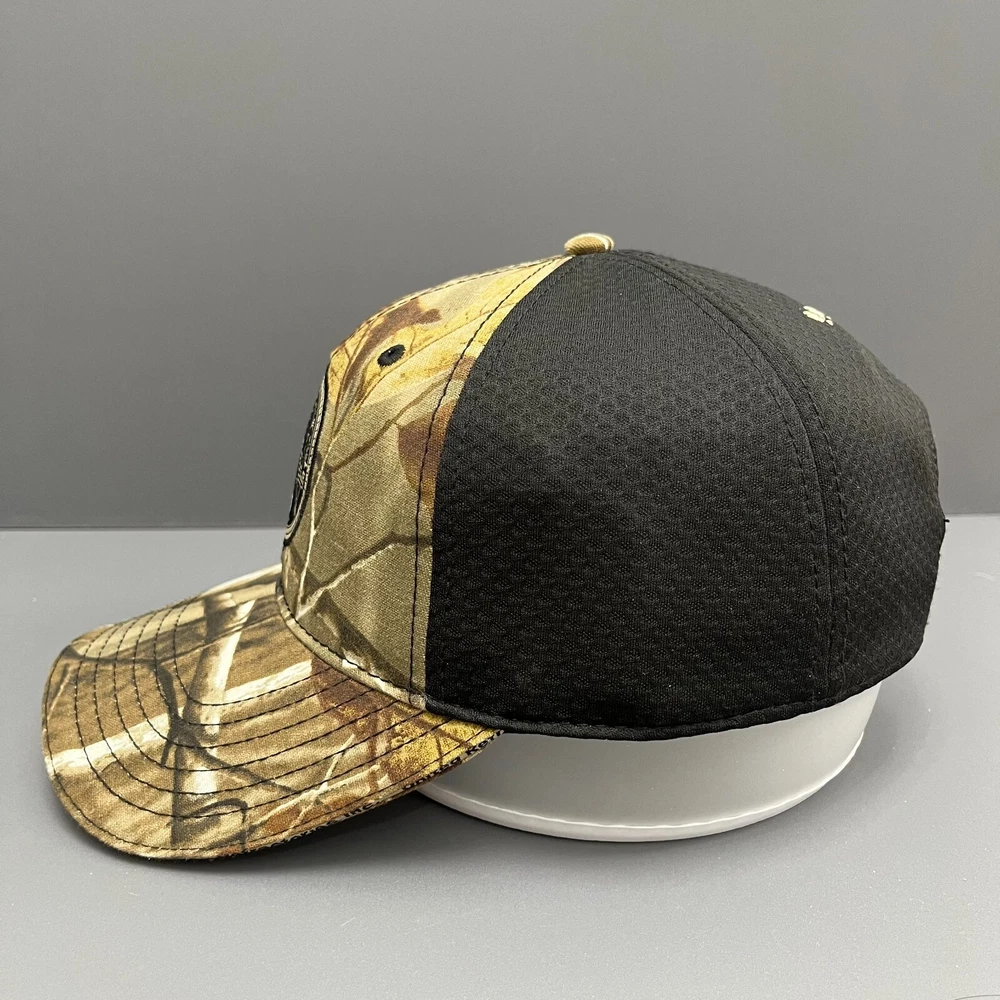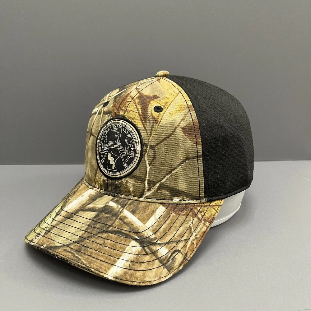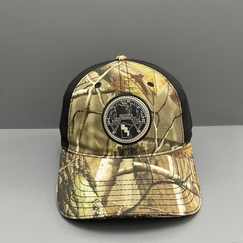 PRODUCT DESCRIPTION Perfect for the Outdoors This rugged trucker cap combines functionality and style with its woodland camouflage pattern and breathable black mesh back. Designed for outdoor enthusiasts, it features an intricate emblem on the front, possibly representing a hunting or outdoor organization. The gold-threaded embroidered deer and tracks on the back further emphasize its nature-inspired theme. Key Features: Design & Style: Woodland camouflage pattern with a black mesh back panel. Front Logo: Round emblem that could represent an outdoor or hunting brand. Back Detail: Embroidered deer and tracks in gold, highlighting the hunting theme. Material: Durable cotton twill front panel and breathable mesh back. Brand: Unbranded, likely a specialized outdoor or hunting brand. Size & Adjustment: Adjustable snapback closure for a custom fit. This cap is ideal for anyone who enjoys outdoor activities such as hunting, hiking, or camping. Its design offers both style and comfort, making it a great addition to your outdoor gear collection. Shipping & Additional Information Shipping Time: Ships within 2-3 business days. Delivery times may vary by location. Returns: 30-day return policy. Please ensure the product is in unused condition. Care Instructions: Spot clean only. Do not machine wash or dry clean.