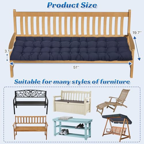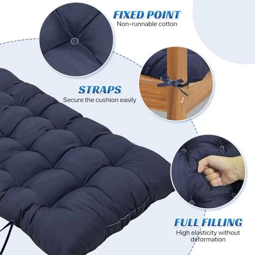This outdoor bench cushion is a game-changer for my patio! The thick, tufted design is incredibly comfortable, and the waterproof fabric holds up perfectly against rain and spills. The 3-inch pearl cotton filling keeps its shape, even after heavy use, and the deep blue color adds a stylish touch. Fast shipping and great quality—definitely worth it for anyone looking to upgrade their outdoor seating!