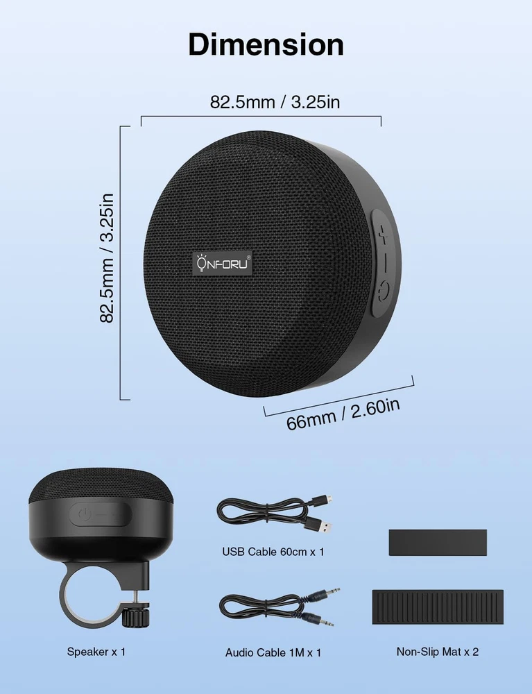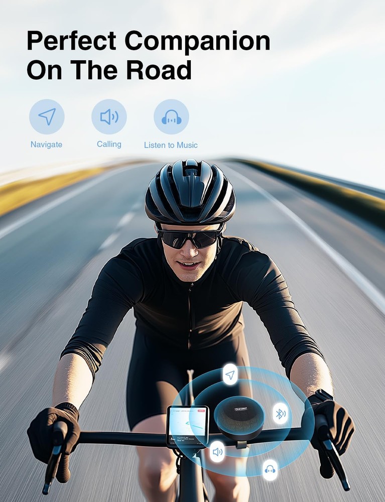 Portable Bluetooth Bike Speakers: This portable waterproof bluetooth bike speaker is small in size but with surprisingly sound. It is crystal clear and is loud enough to hear while riding your bike. Only 250g weight and 3.24 inches size ,this mini Bluetooth speaker is convenient to be carried anywhere Integrated Design : This 5W bluetooth bike speakers is integrated design allows the speaker to be mounted more stably on a bicycle, motorcycle or scooter. No fear of bumpy roads, you can use it with confidence when you riding whether you are on ordinary roads or mountain roads Up to 12 Hours of Playtime: bicycle speaker features a built-in rechargeable battery with up to 12 hours of battery life, long battery life allows you to enjoy music even outdoors High Compatibility: Wireless speakers adopt seamless Bluetooth 5.0. With AUX , you can also take it off the bike in your spare time, portable for phones, tablets, laptops, computers, Macbooks, MP3 players, etc. Please note that the distance between the phone and the speaker should not exceed 10 meters Waterproof & Durable: IP44 Waterproof, no more worrying about rain or spillsdurable. Fabric material and rugged rubber housing protects it on all of your riding