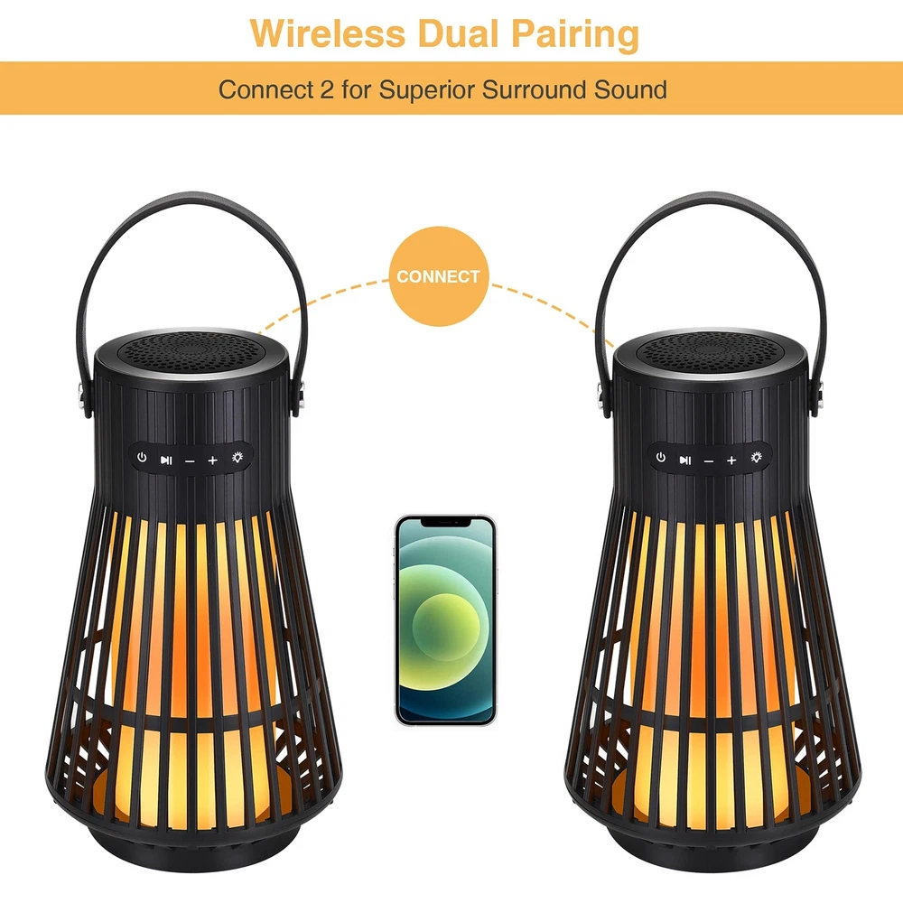 Outdoor Bluetooth Speaker with Flame Atmosphere, Led Waterproof Wireless Torch Speaker, Stereo Sound, Cool Gadgets for Camping, Yard, Party, Home, Decorations, Electronics Gifts for Men, Women, Dad 3 IN 1 flame ambiance speaker: The wireless LED speakers are not only speakers but also hanging lanterns, and night lights! Upgraded 120 LEDs torch flicker gorgeous dancing flames, not like other speakers only include 60,96 LEDs, All 120 LEDs flicker together with warm yellow lights, forming a stunning flame, mimic extremely realistic & natural dancing flames, combined with great audio function, to create a romantic atmosphere for your yard, garden, party, and camping. Long Service Time: Operated rechargeable battery, playtime is about 18 hours. Easy battery charge by USB cable with 4-5 hour full charge. IP65 waterproof protection safeguards against rain, dust, snow, and spills, therefore are applicable in the shower room, by the pool, or beach. 2 Modes of LED Lights: Constant light and flashing flame light modes. You can use it as a small speaker, as an outdoor torch, or the option as landscape decor to hang in the house, hang out a tree branch, in the back yard, by the pool. Cool electric gadgets for bedroom, and living room, home, as well as, house warming, gathering, picnic, bbq, wedding, outdoor travel etc. Dual Pairing Function for Multiple occasions: Premium Bluetooth 5.0 Version enables fast and stable connection to your mobile phone or device up to 66 feet away (no barriers). Equipped with a high-performance driver and a passive subwoofer, compatible with table any devices via Bluetooth such as pad, phones, and computer. Sync 2 speakers together easily, you'll enjoy superior loud stereo sound. Unique Gifts for Men Women: Cool Gadget for men, A great present for Thanksgiving Day, Christmas, New Year, Father's Day, Mother's Day, Easter Day, Halloween, Birthday, Anniversary, Wedding. The gift for yourself, lovers, family, friends, classmates, colleagues. We are so confident that you will fall in love with the outdoor flame speaker SHIPPING Domestic Buyers - We have confidence in our products, but if you are not fully satisfied please contact us within 30 days of purchase and you will get full refund. - We ship within 3 business days of payment, usually sooner - We offer FREE shipping on all orders! - We only ship to the lower 48 states, no APO/FPO addresses or PO Boxes allowed International buyers – please note: Import duties, taxes, and charges aren't included in the item price or postage cost. These charges are the buyer's responsibility. - Please check with your country's customs office to determine what these additional costs will be prior to bidding or buying. * Order Cancellation Policy ** You can return a product for up to 30 days from the date you purchased it. 1. The seller reserves the right to cancel the special case only due to eBay cancellation fee. 2. The decision of seller is the final. 3. The seller will respond to the cancellation request within 2 business days. Please wait for the result of cancellation. 4. In case the cancellation is not completed by some reasons, the buyer can follow the options below to get the refund. 4.1 The buyer can reject the item when it arrives. 4.2 The buyer can send the item back to the seller within 30 days If the buyer receives item (USA Shipment ONLY). The seller will provide the FREE return label to the buyer when the buyer opens " Return Item" case on eBay by using the reason as "Change my mind" ONLY. 5. When buyer has placed the order. The order will be processed and completed by automatic warehouse system within 5 minutes. In case that buyer sends the cancellation request after 5 minutes of placing the order, the request will be rejected. **Sending direct message to cancel the order is not allowed for every case.* Return Policy For the return case - If buyer would like to return the items for refund or replacement, please CONTACT SELLER to receive the free return label from seller. The refund or replacement will be processed with the tracking number of return label which is provided by seller only. The other ways of return which are not approved by seller will not be processed for the refund or replacement.