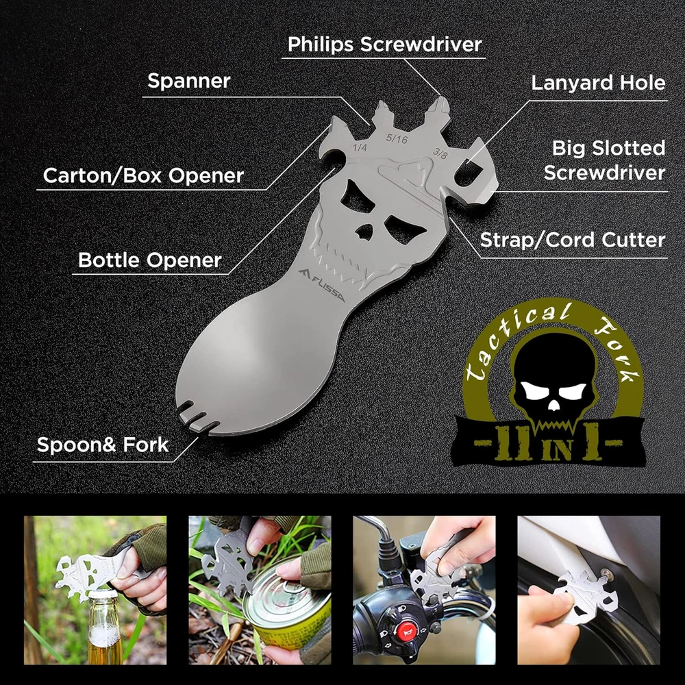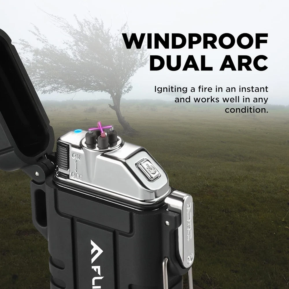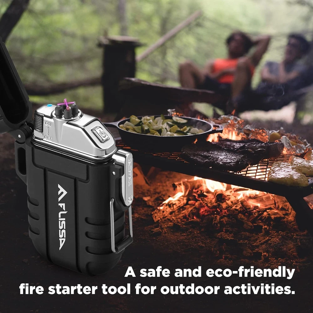 IPX8 Fully Waterproof - The cool lighter is clad in comfortable rubber, the case snaps shut and features a metal-ring safety latch for water seep inside. Even though splashes and heavy rain, this tool will continue to work. Powerful & Reliable Arc lighter - Having a windproof lighter you can rely on will make starting fires easy and will save you a lot of time. The plasma electrodes of the lighter create a high-temperature dual arc, that ignites a fire in an instant, and ensures still be used in strong wind or other bad weather conditions. Economical & Eco-friendly - USB Rechargeable lighter with built-in 220mah lithium battery, which can plug into PC, car charger, or power bank, etc. (USB cable included) Flame-less lighter is very eco-friendly and easy to use. Security Upgrade - The side power button can prevent accidental triggering of the ignition button, and the metal locking clasp secures the lid to prevent it from falling open in your bag. This waterproof lighter can maintain a safe state for children and adults. 11 in 1 Multi-Function Spoon - This punk-style skull spoon is made of high-quality stainless steel, it is small, lightweight, exquisite, easy to carry around, and ideal for outdoor projects. Flissa rechargeable lighter & Multifunctional Spoon Combo is the best choice for emergency equipment, adventure, camping, hiking, hunting, survival tactical, traveling, etc. Product Description FLISSA WATERPROOF LIGHTER OUTDOOR WINDPROOF LIGHTER ELECTRIC LIGHTERS Ideal for Camping, Hiking, Hunter and more FLISSA USB Rechargeable Electric Lighters Perfect for outdoor lighter, camping fire starter tool, emergency equipment, camping survival gear, gadgets for men and more. The video showcases the product in use. The video guides you through product setup. The video compares multiple products. The video shows the product being unpacked. IPX8 WATERPROOF Fully submersible in water and perfect for the outdoor environment Clad in comfortable rubber, the case snaps shut and features a metal-ring safety latch for water seep inside. WIND RESISTANT Can start a fire in almost any weather conditions Having a windproof lighter you can rely on will make starting fires easy and will save you a lot of time. SECURITY UPGRADE A safe fire starter tool for outdoor acivities USB Rechargeable lighter with built-in 220mah lithium battery, which can plug into PC, car charger, or power bank, etc. SIMPLE STEPS TO USE FLISSA TRACTICAL SURVIVAL LIGHTER FEATURES Waterproof, Dustproof & Wind Resistant fully submersible in water and perfect for the outdoor environment. Completely dust proof and windproof. This punk style skull spoon is made of high quality stainless steel, it is small, lightweight, and exquisite, ideal for outdoor projects. The metal locking clasp secures the lid to prevent it from falling open in your bag. This lighter can maintain a safe state for children and adults. Compact Size. The Waterproof lighter is about 2” tall and 1.44” wide. Weight is 1.73oz. Easy to pack and carry anywhere. WIDE APPLICATION