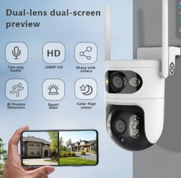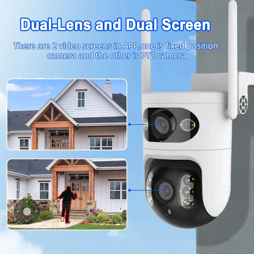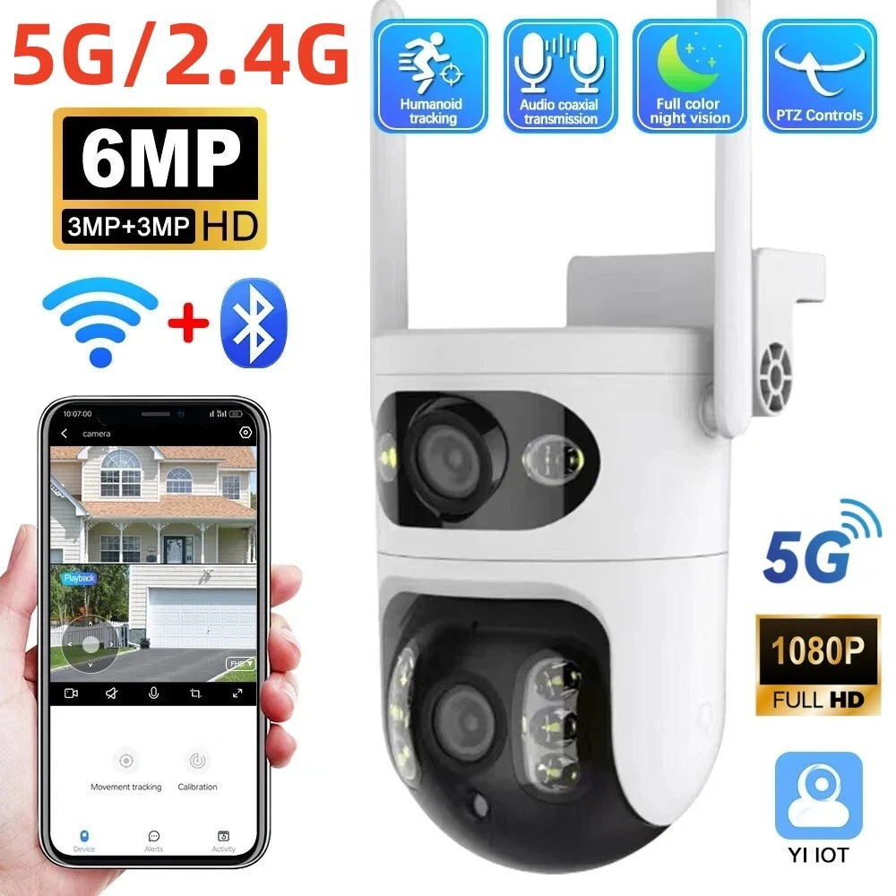 Outdoor Wireless 5G WiFi IP Camera YIIOT APP Control Dual Lens PTZ Security Cam