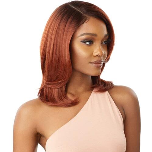 Outre Synthetic Melted Hairline Swiss Lace Front Wig - SABRINA COLOR SHOWN ON MODEL : DR2/CINSP, DRFFCHOTR, & DR4/BLGDNHN MATERIAL : Synthetic Hair TYPE : Lace Front Wig LENGTH : Medium HEAT SAFE : Yes DESCRIPTION : Frontal Effect Hairline No Plucking Required Baby Hairs Included Soft Swiss Lace Pre-Attatched Wide Elastic Band Redesigned Comfort 5" Deep Parting Melted Hairline lets you show off those edges! Go ahead and slick your hair back, tuck it behind your ear, and swoop the natural looking baby hairs. Melted hairline has ear to ear soft swiss lace, a pre attatched elastic band to ensure a secure fit, lift free fit, and is pre plucked to create a natural finish looks melted right onto your hairline.