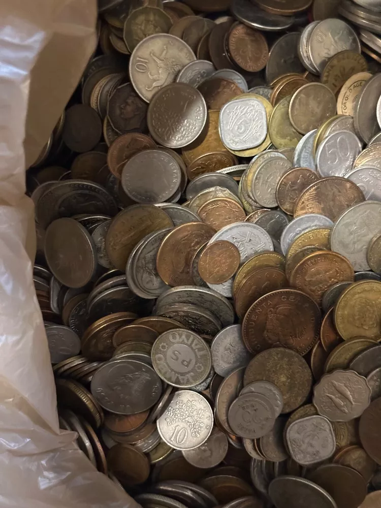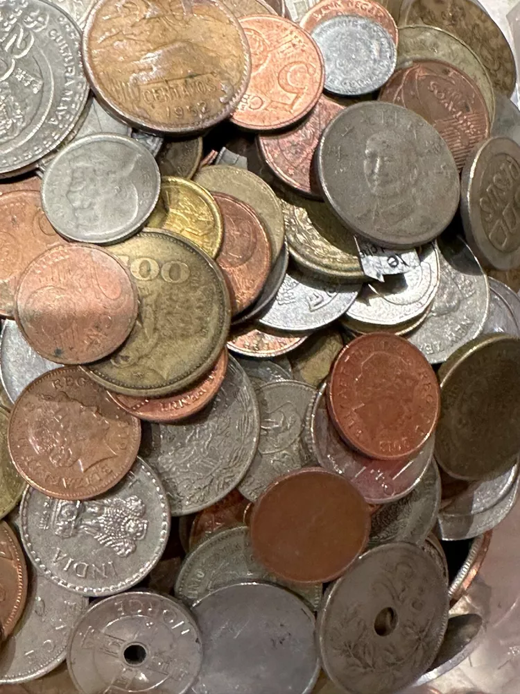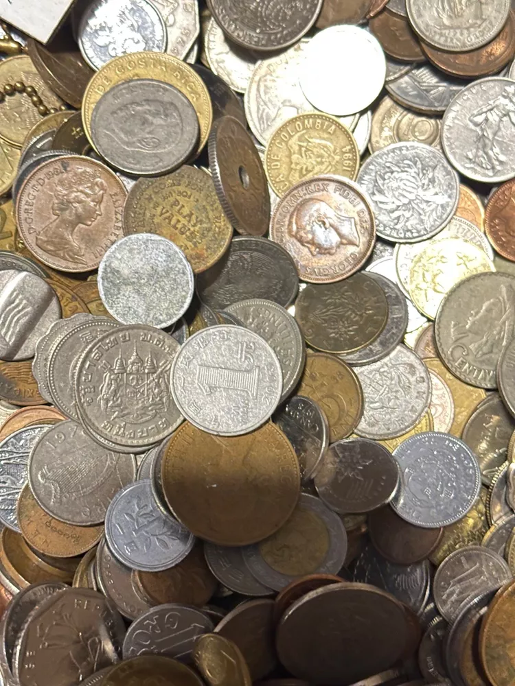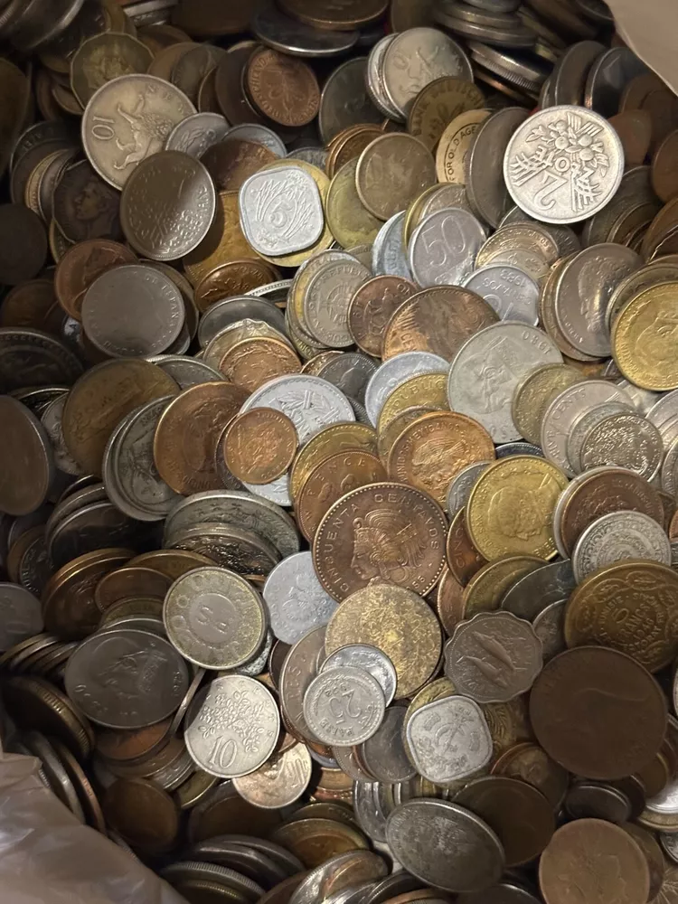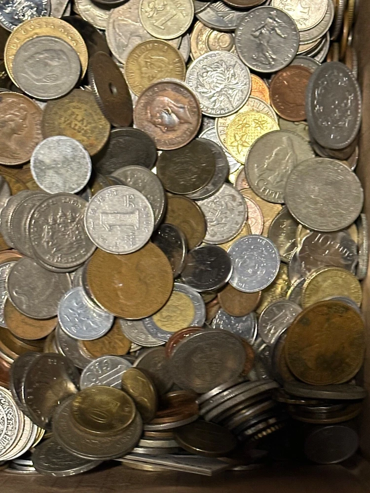 This 1 PLUS POUNDS lot of world coins contains a diverse collection of international coins from a variety of countries and regions. The coins range in denomination, composition, and year, offering a unique opportunity for collectors to expand their collection. The coins have been SEARCHED to reduce the number of low grade and Canadian coins, BUT NOT graded or certified, and their circulated or uncirculated status may vary. This lot includes coins from unknown countries and regions of manufacture, adding an extra layer of mystery to the collection. With almost every type of composition available, EXCEPT THERE IS NO SILVER OR GOLD--collectors will have the chance to own a piece of history from around the world. Whether you are a seasoned collector or just starting out, this bulk lot of world coins is a START for any serious coin enthusiast.