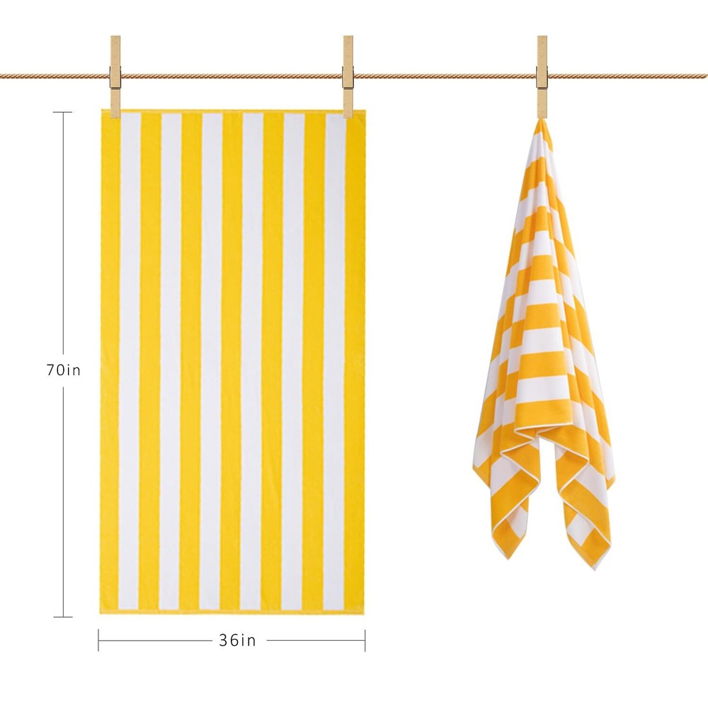 Large Oversized Beach Towel - Big Cotton 36 x 70 Inch Striped Pool Towel, Large Cabana Soft Swimming Towel for Adult Men Women,Yellow 100% COTTON BEACH TOWEL- Extra large beach towels oversized made of 100% American combed cotton,and the advanced technology in textile process makes the yellow beach towel no lint; DO NOT FADE - This classic cabana striped big beach towels oversized in multiple colors which won't fade with washings; ULTRA ABSORBENT - Big adult beach towel is ultra-absorbent and soft against to help get you dry quickly on the beach or poolside as a vacation accessory or treat yourself to spa quality towels at home; OVERSIZED BEACH TOWELS FOR ADULTS - XL beach towel for men and women which size is 36 x 70 inches, it's allow to use anywhere you desire with comfort and space,it can be beach towel yellow,mens beach towel,womens beach towel,pool towel oversized,bath towels,swim towel,shower towels,camping towel,travel towel and more uses as you need; EASY CARE - This soft beach towel large is machine washable,wash cold on a gentle cycle,tumble dry low,do not bleach. Features: Oversized : --Cotton beach towels for adults,36 x 70 inches, This classic cabana striped Extra Large Beach Towels Oversized in multiple colors enough for adults,women and mens beach towels for adults No lint : -- 100% American combed cotton use advanced technology in textile process No Fading : -- nice dye and special process to fix beach towel cotton color Multiple Uses: -- Can be used for gym, the beach, camping, outdoor, pool towels oversized, Plush beach towels funny , Cabana stripe beach towel,xl Oversized beach towels for adults, fluffy womens beach towel travle, summer towel, bath towel,swim towel,Big beach towel for men Size: 36 x 70inches Package: 1 beach towel in pack Shipping We offer FREE shipping on all orders! We ship within Three business days of payment, usually sooner. We use a selection of shipping services such as UPS, FedEx, USPS etc. We only ship to the lower 48 states, no APO/FPO addresses or PO Boxes allowed. Local pickups and combined shipping options are not provided at this time. Return You can return a product for up to 30 days from the date you purchased it. Any product you return must be in the same condition you received it and in the original packaging. Please keep the receipt. Payment We accept payment by any of the following methods: PayPal Please pay as soon as possible after winning an auction, as that will allow us to post your item to you sooner! Feedback Customer satisfaction is very important to us. If you have any problem with your order, please contact us and we will do our best to make you satisfied. Contact Us If you have any queries, please contact us via ebay. We usually respond within 24 hours on weekdays. Please visit our eBay store to check out other items for sale! Thank you for shopping at our store.