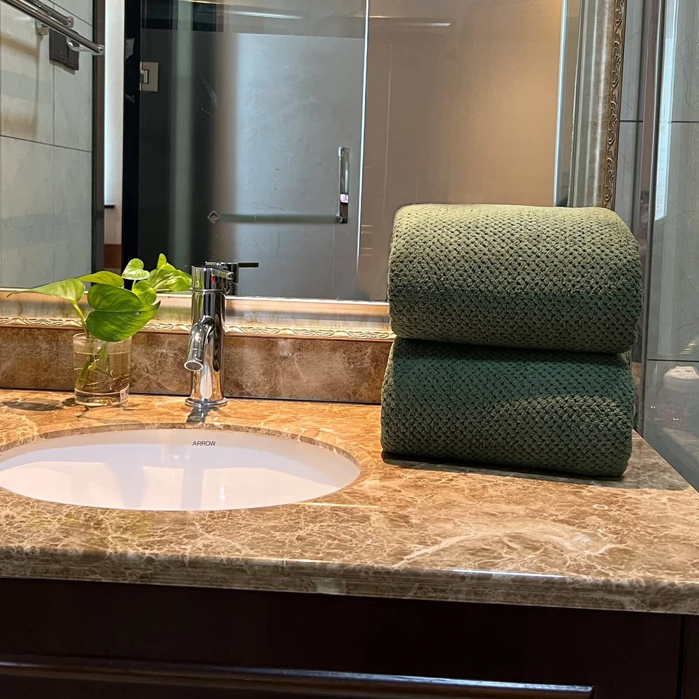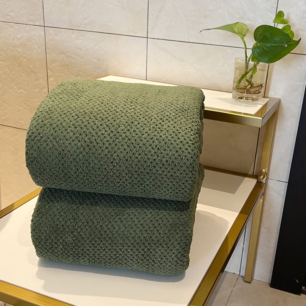 These oversized bath towels are amazing! The extra-large size wraps around perfectly, and the microfiber material is incredibly soft and lightweight—it feels like a cozy blanket. The olive green adds a nice touch of elegance to my bathroom. Super absorbent and quick-drying, they’re perfect after a shower or at the beach. Definitely worth it for the price!