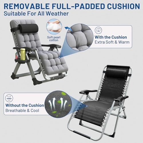 Return Policy Fast Delivery Trusted seller Oversized Zero Gravity Chair, XL Lounge Chair 29” Width, Padded Recliner Chair W/Removable Cushion & Adj Headrest, Storage Bag, Footrest Cushion, Cup Holder, for Indoor Outdoor, Gray Product Description 【Premium full set of accessories】The Zero Gravity Chair ensures your utmost convenience and ultimate comfort. Including 1 heavy duty chair storage bag, 1 soft padded cushion, 1 comfort footrest cushion, 1 cup holder, 1 eye mask, and 1 pair of earplugs, ing a heightened sense of luxury and ease. 【Extra-wide seating design (29” width) 】 Zero Gravity Chair provides a more spacious and comfortable seating experience compared to most other chairs. Not only does it allow you to relax more comfortably, but it also caters to the needs of different body types, offering an all-encompassing sense of comfort. Whether you're camping outdoors or enjoying leisure time at home, this chair fulfills your need for a spacious seating area. 【Multifunctional All-Season use】Equipped with a detachable cushion, it provides extra softness and warmth during the colder seasons, while removing the cushion allows for air circulation and a refreshing feel in hot weather. 【Easy to Carry and Convenient to Use】 This foldable lawn chair requires no assembly and can be effortlessly folded and unfolded within seconds. Equipped with an aluminum alloy lock, this zero gravity recliner allows you to easily adjust the reclining degree from 0° to 170°, enabling you to relax and fully indulge in a soothing experience. 【Materials and Parameters】Quality is the top priority. The lounge chair is meticulously crafted from premium raw materials, ensuring excellence in every aspect of the product. The luxury zero gravity chair measures , weight 25lbs, support weight of up to 450LBS. offers 7 x 24 hrs CS. If you have any questions, we will provide you with solutions at first time. Shipping Returns Payment Shipping Shipping is FREE to all addresses other than APO/PO boxes in the lower 48 states. All our stock ships from US-based warehouses. Shipped via USPS or UPS (depending on location and package weight) Unless stated otherwise, all orders will ship within 24-72 hours of your payment being processed. Check our feedback to see the great reviews of FAST shipping we offer. Returns Seller does not accept returns Payment We currently accept payment via eBay managed payments only. Once payment is cleared, we will dispatch your shipment within 1-3 business days. Please refer to the "Shipping" tab for more information regarding shipping speed to your destination.