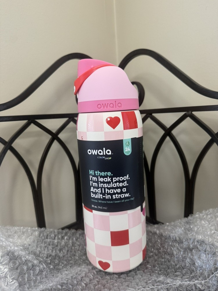 Get your hands on the limited edition Owala FreeSip water bottle, a must-have for any sports enthusiast or Valentine's Day gift recipient. This 32 fl oz stainless steel bottle comes in a striking pink color with a checkered theme, making it a unique addition to your collection. The bottle features a locking mechanism, flip top, and straw for easy access to your favorite beverage. The Owala FreeSip water bottle is BPA-free, phthalate-free, and dishwasher safe. It also comes with a child-resistant cap, making it a great choice for families. The double wall and vacuum wall construction ensure that your drink stays hot or cold for longer. This bottle is refillable, reusable, and car cup holder compatible for added convenience. With its lifetime manufacturer warranty, you can rest assured that this bottle will last you for years to come.