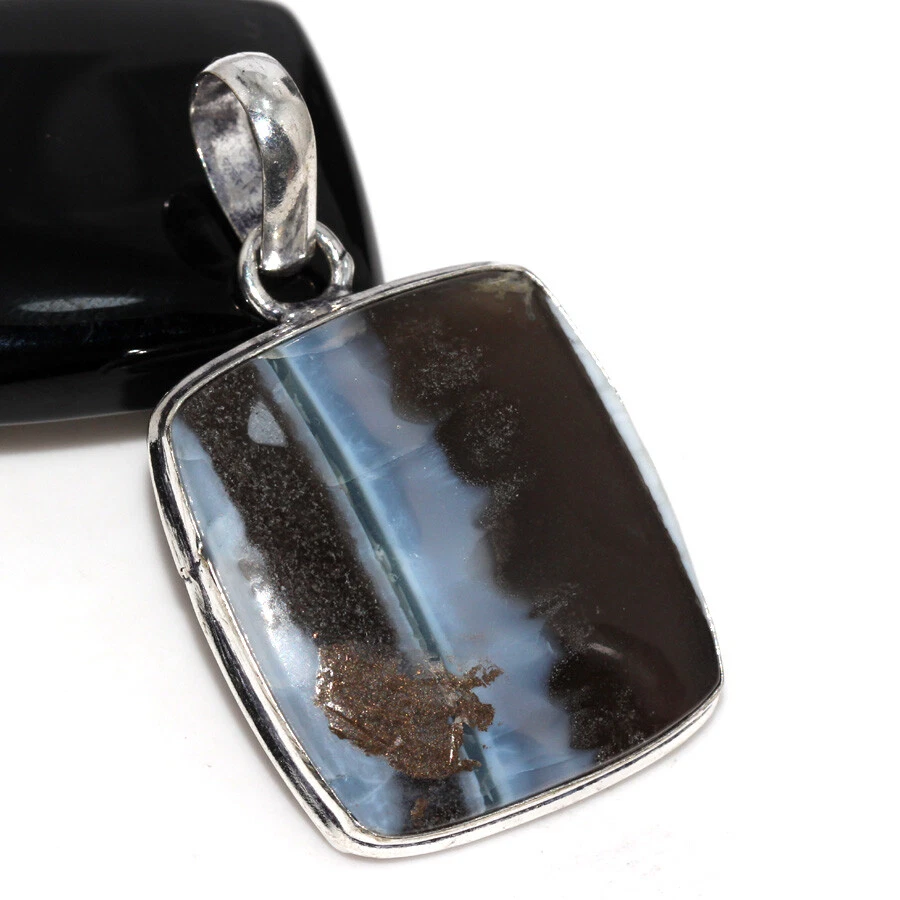Owhyee Blue Opal 925 Silver Plated Gemstone Pendant 1.7" Gifts Jewelry JW