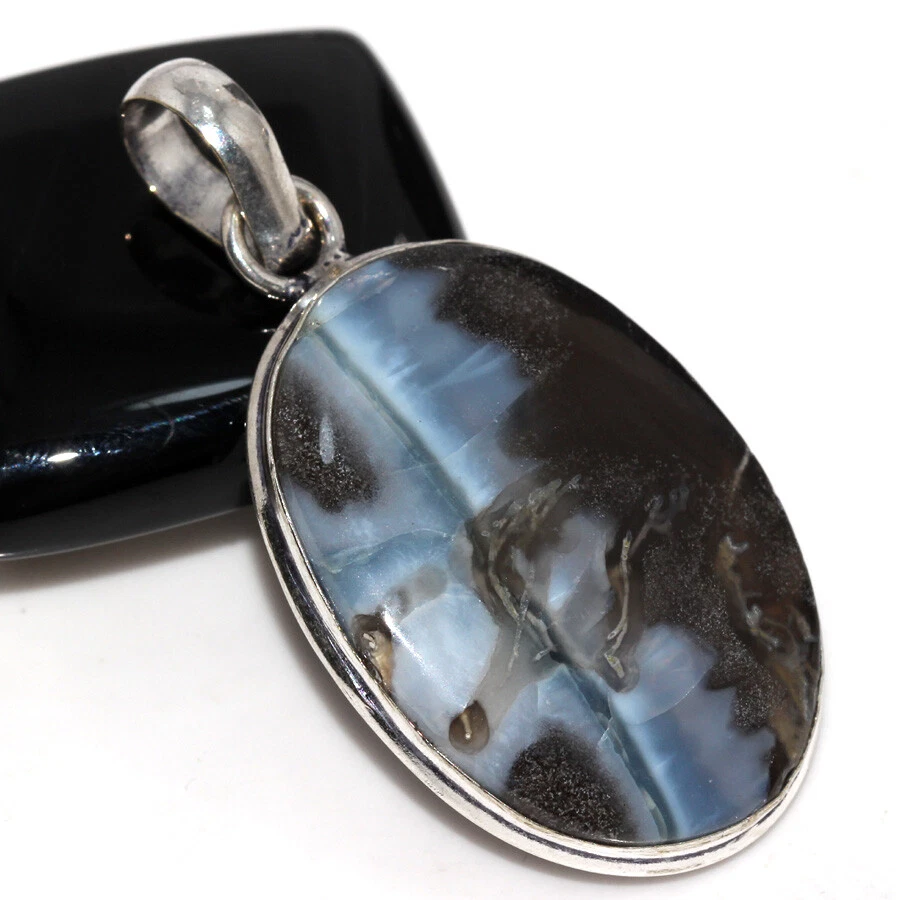 Owhyee Blue Opal 925 Silver Plated Gemstone Pendant 2" Amazing Gift JW