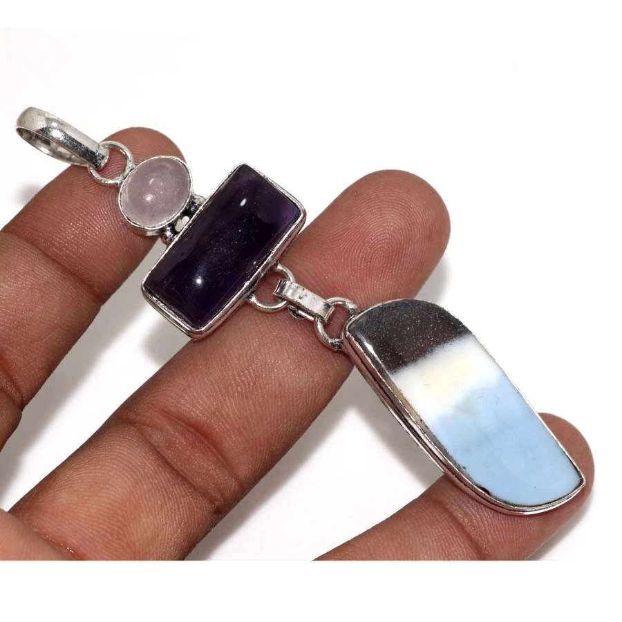Owhyee Blue Opal Amethyst Pendant 3.5" Aesthetic Jewellery JW
