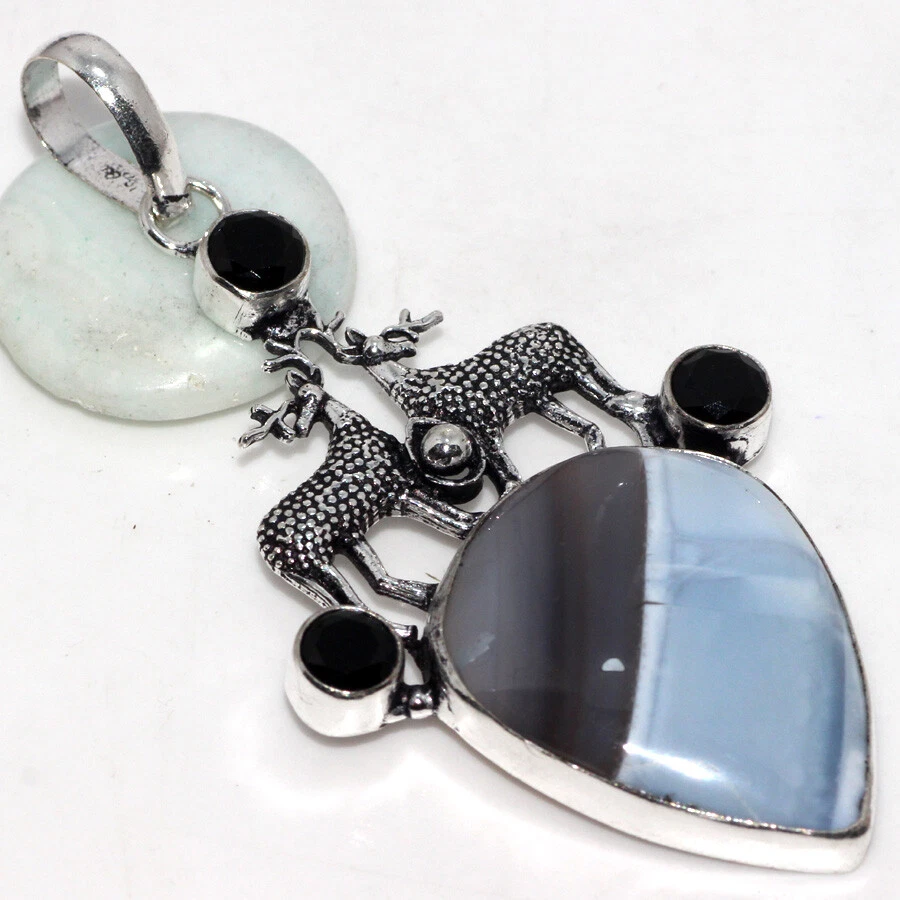 Owhyee Blue Opal Black Onyx Gemstone Pendant 3" Aesthetic Jewellery JW