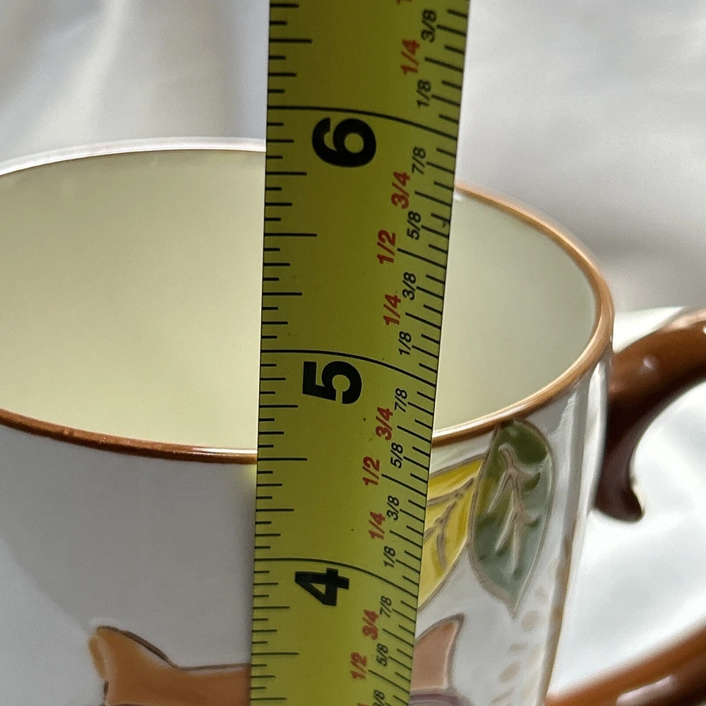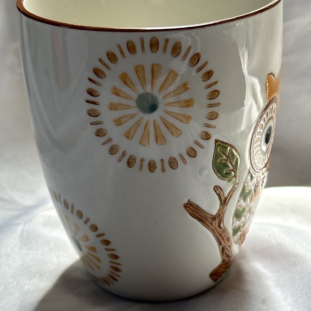 The Owl Cup Mug is a colorful and charming coffee or tea mug featuring an owl design with branch and leaves accents. Made of ceramic and or porcelain, this 16 oz. mug is perfect for all occasions and hot beverages. The multicolor pattern and animal-themed design make it a fun and unique addition to any kitchen or home decor. This round mug is a personal favorite for those who appreciate cute and whimsical items in their collection. Does have one very small chip on bottom as seen in pictures!