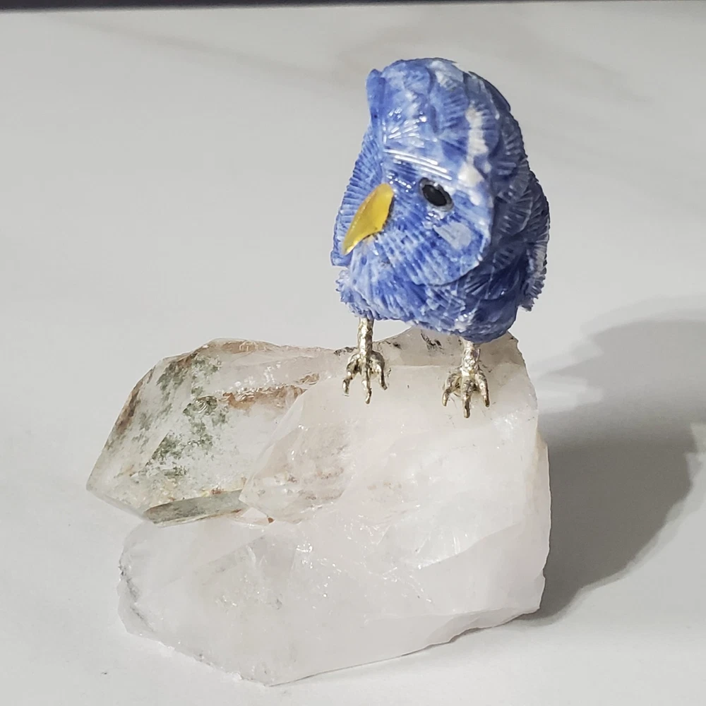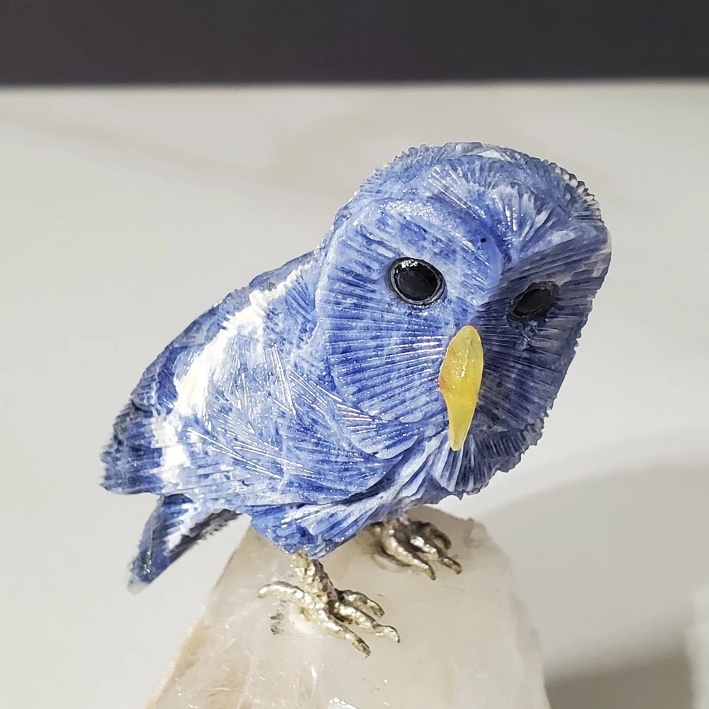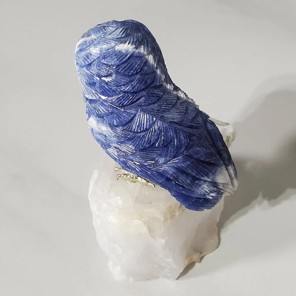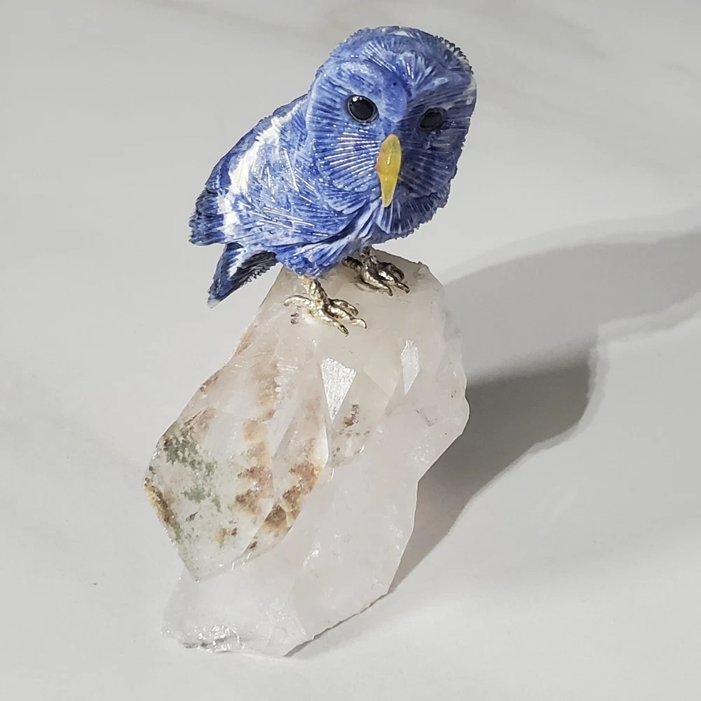 Owl Figurine Natural Sodalite Carved on Clear Quartz Point with Inclusions In good condition No chips Please view all photos for condition and measurements Thank you for viewing our products. PRODUCT SOLD AS IS. Please Message With Questions Prior To Purchase. If you have an issue with any of our items please reach out to us prior to contacting eBay. Thanks! Please note: We do sell new and used items. Our used items are pre-owned / pre-loved & may show signs of wear. Please view all photos for details, size, & imperfections as they are a form of the descriptions in addition to what is stated in the description section. We will do my best to inspect each item to find the best quality items possible. We do not include/replace batteries in any of our items unless they have been supplied by the manufacture and are in new unused condition. If an item is sent to you NEW / SEALED and you open it or remove the tags, it is NO LONGER ELIGIBLE FOR RETURN. Opened items / Removed tags - Means the item is NO LONGER in its original state and can no longer be sold as NEW. -Thank you for your understanding We are often asked about shipping cost. We are excited about your purchase and take pride in your package arriving to you undamaged . We wrap and cushion all necessary items prior to shipping which adds weight to your package. Unfortunately, this is not optional. Thank you for your understanding. We do not accept returns or issue refunds however in the event we do accept your return or issue a refund we do not reimburse your original shipping fee. Due to how eBay handles international shipping we do not accept any international returns. Thanks again!