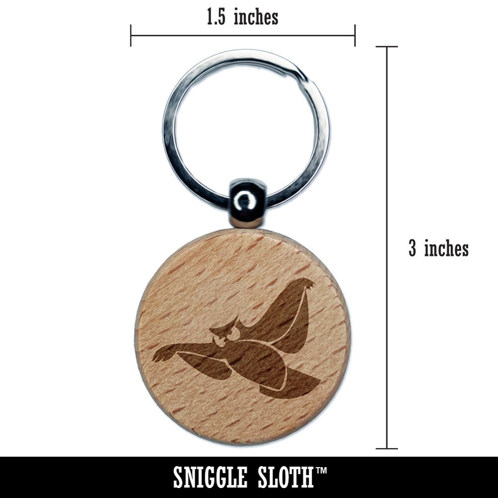 Owl Flying Bird Doodle Engraved Wooden Round Keychain Charm
