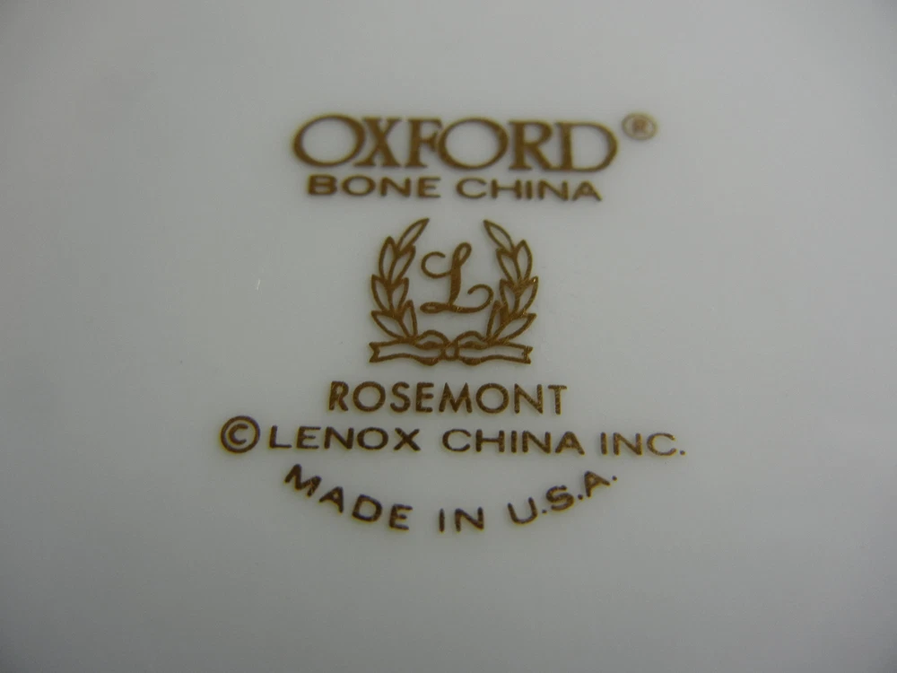 Manufacturer: Oxford China (Division of Lenox) Pattern: Rosemont - platinum trim Item: Dinner Plate Size: 10 3/4" diameter Condition: Excellent Domestic shipping and shipping to Canada rates are quoted in the item description. We will ship international, contact us for rates.