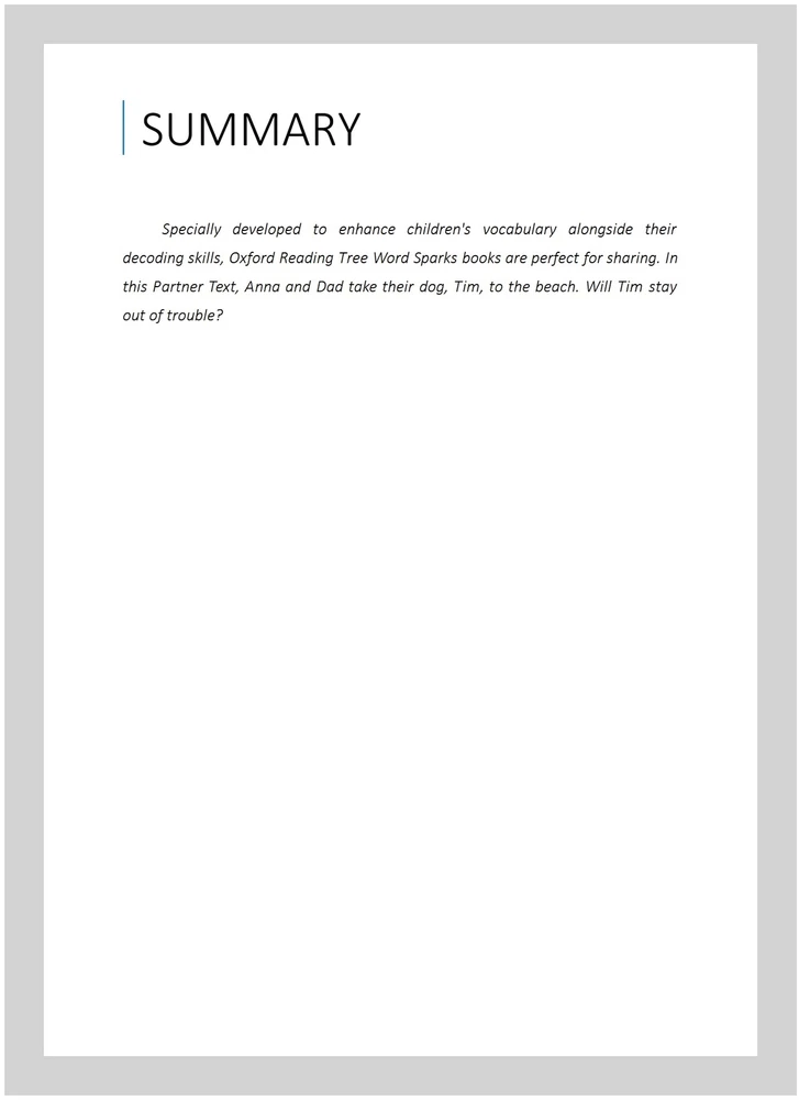 Oxford Reading Tree Word Sparks: Level 1+: Stop, Tim!, Paperback by Miles, Liz; Campedel, Yvonne (ILT); Clements, James (EDT); Wilkinson, Shareen (EDT), ISBN 0198495218, ISBN-13 9780198495215, Like New Used, Free shipping in the US Specially developed to enhance children's vocabulary alongside their decoding skills, Oxford Reading Tree Word Sparks books are perfect for sharing. In this Partner Text, Anna and Dad take their dog, Tim, to the beach. Will Tim stay out of trouble?