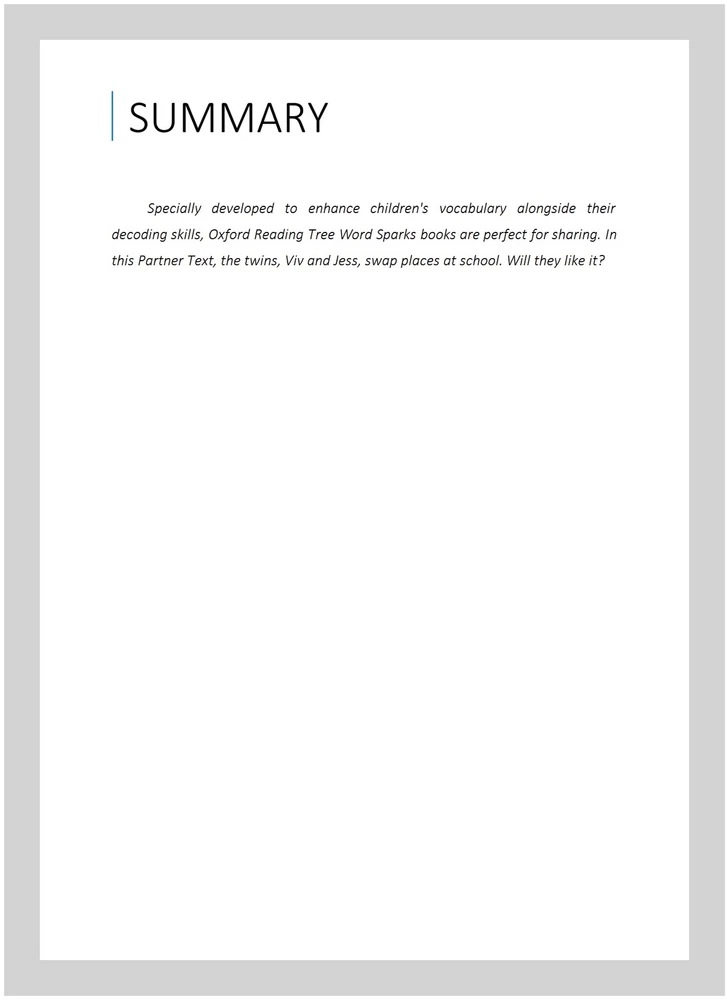 Oxford Reading Tree Word Sparks: Level 2: Twin Tricks, Paperback by Hawes, Alison; Sonke, Sandie (ILT); Clements, James (EDT); Wilkinson, Shareen (EDT), ISBN 0198495390, ISBN-13 9780198495390, Brand New, Free shipping in the US Specially developed to enhance children's vocabulary alongside their decoding skills, Oxford Reading Tree Word Sparks books are perfect for sharing. In this Partner Text, the twins, Viv and Jess, swap places at school. Will they like it?