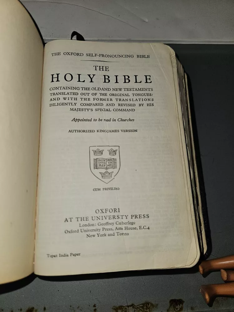 Oxford Self-Pronouncing Bible 1954 Leather Bound Black Cover Authorized KJV. Shipped with USPS Media Mail.