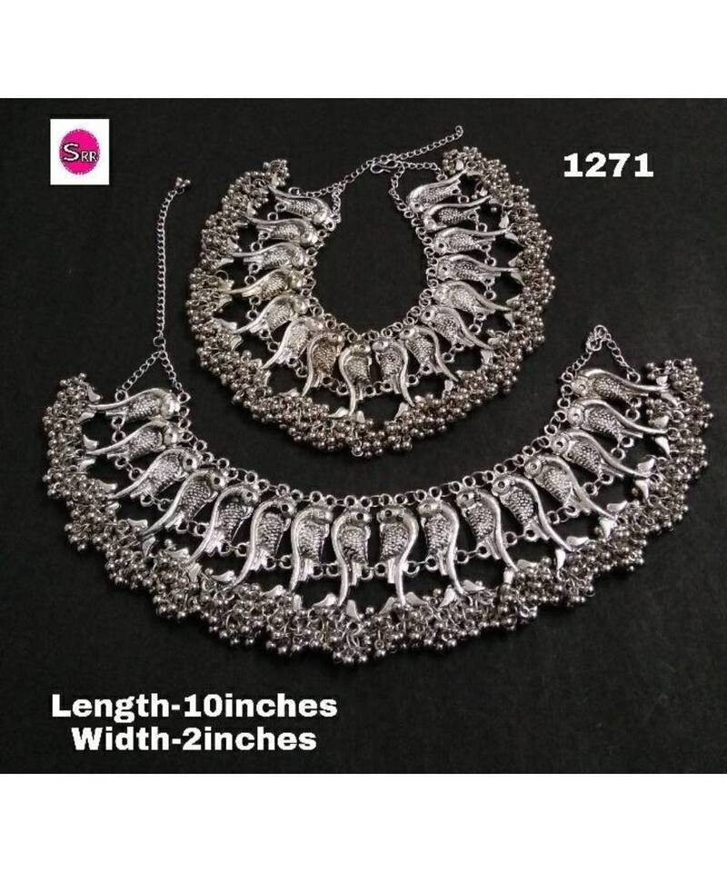 Crafted with meticulous attention to detail, this anklet showcases the timeless beauty of brass metalwork paired with a touch of ethnic artistry. The oxidized finish gives it a unique, antiquing look that complements any ensemble, making it an ideal choice for wedding, engagement, or anniversary celebrations. Its versatile silver color ensures it will be a stylish addition to a variety of outfits. The piece is a testament to Indian craftsmanship, originating from a rich tradition of beauty and cultural heritage. It is presented as a single unit, ready to add an exquisite touch to your collection or to be gifted as a symbol of elegance and tradition. Whether it's for personal wear or a special occasion, this anklet is sure to be cherished.
