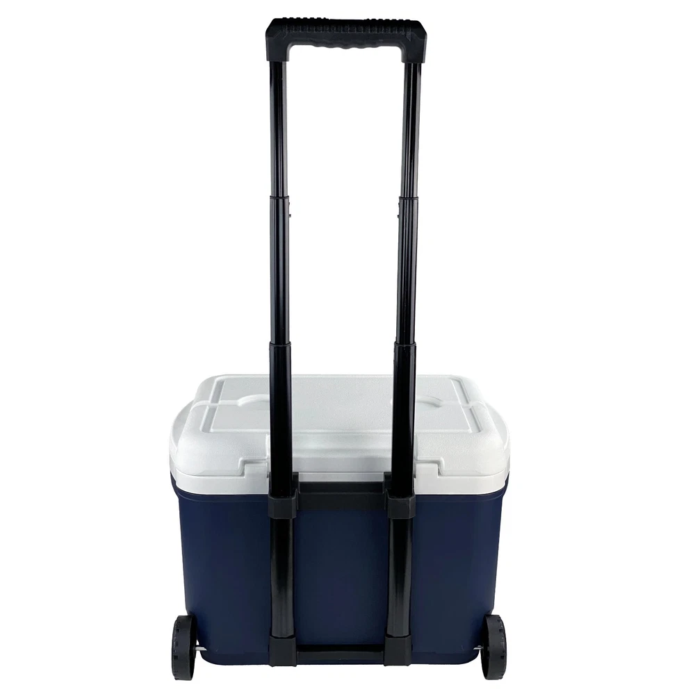 Ozark Trail 30 Quart Hard Side Wheeled Cooler, 42-Can Capacity, Blue Start your adventure outdoors off right with the Ozark Trail 30 Quart hard-side rolling cooler. With a telescopic wheel system, This 30 QT cooler is easy to roll to any event. With thick insulation your snacks and beverages will stay cool until you're ready to enjoy. This cooler features a 28-Liter storage capacity that holds up to 42 (12-oz) cans. Keep your beverages close by with the molded cup holders on the lid of the cooler. This Ozark Trail 30-quart cooler is made with a minimum of 25% post-consumer recycled plastic. Adventure is where memories are made, whether it's campouts in the backyard with the kids, Saturdays at the river with friends, or a week in the wilderness alone. Ozark Trail helps you and your family create everyday adventures with gear and accessories built with you in mind. From backpacks to tents, they're rugged and dependable. Because adventure is not a destination; it's a lifestyle. Ozark Trail 30 Quart Rolling Cooler 42-Can Capacity For best storage results, stack cans in vertically first, then horizontal along the top layer. Apply ice on top until the cooler fills to the top. Telescopic Handle and Wheel System Dual Side Carry Handles Dual molded Lid Cup Holders Made with a minimum of 25% post-consumer recycled plastic Features No features description available Brand Ozark Trail Manufacturer Part Number OT-30Q-US-R Color Blue Assembled Product Weight 7.5 lb Assembled Product Dimensions (L x W x H) 20.00 x 14.10 x 15.11 Inches