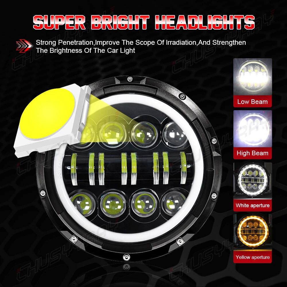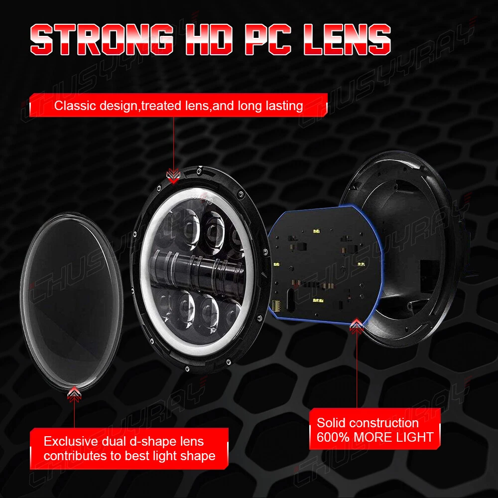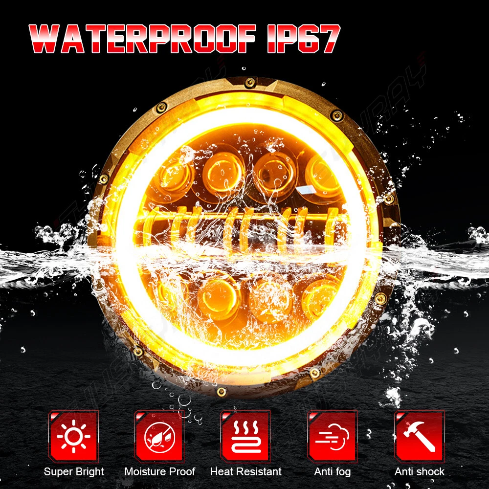 PAIR For FJ Cruiser 2007-2014 7'' Inch Round LED Headlights Hi/Lo Beam Halo DRL