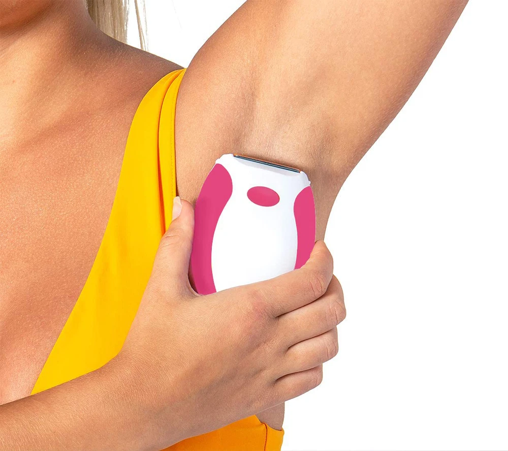 Shave effortlessly with the Palmperfect electric shaver. This device is great for use on legs, underarms, bikini line, or face. The dual clipper blade makes shaving any hair length painless and easy. Say 'goodbye’ to nicks and cuts that come with traditional razors and say hello to beautifully bare skin. Our specially designed, ergonomic grip allows for total control making shaving safer and easier than ever before. PALMPERFECT's compact hair removal device is perfect for travelling and quick touchups on-the-go. Its convenient cordless design is powered by two AAA bateries (not included). Our water-resistant functionality allows for a comfortable close shave wet or dry, with or without shaving cream, anytime, anywhere! Get an effortlessly close shave each time. The PALMPERFECT Electric Shaver for Women is perfect for shaving legs, underarms, the bikini line, or the face. It has dual-clipper blades to smoothly shave fine or thick hair and a comfortable rubber grip to shave in any direction. The foil head makes it suitable for sensitive skin types and leaves you with silky skin without cuts, nicks, or irritation. This water-resistant women’s shaver is easy to use in the shower or can be used dry if you’re in a hurry. It’s 2x AAA battery-powered, so no cord will get in the way—get those hard-to-reach spots, no problem! Its compact, slim design and attached lanyard make it perfect for travel. Make grooming even easier wherever you are with the PALMPERFECT Electric Shaver.