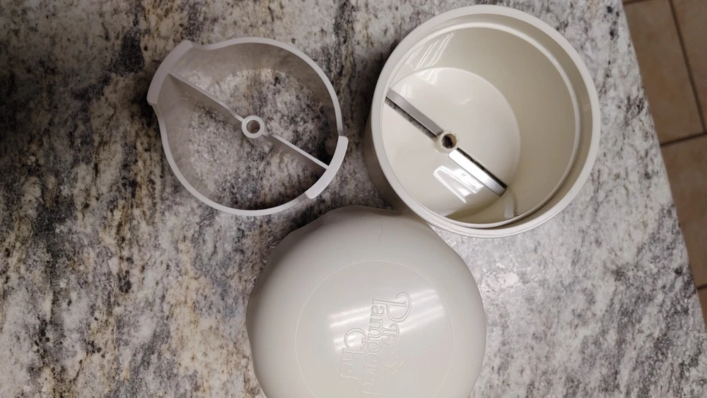 The PAMPERED CHEF Spiral & Slice Vegetable and Fruit Slicer #113 is a versatile kitchen tool that can make your meal prep easier and more enjoyable. This food slicer is made of high-quality plastic material that is durable and long-lasting. It comes in a sleek white color that can complement any kitchen decor. This kitchen gadget is gently loved but fully functional See pics.