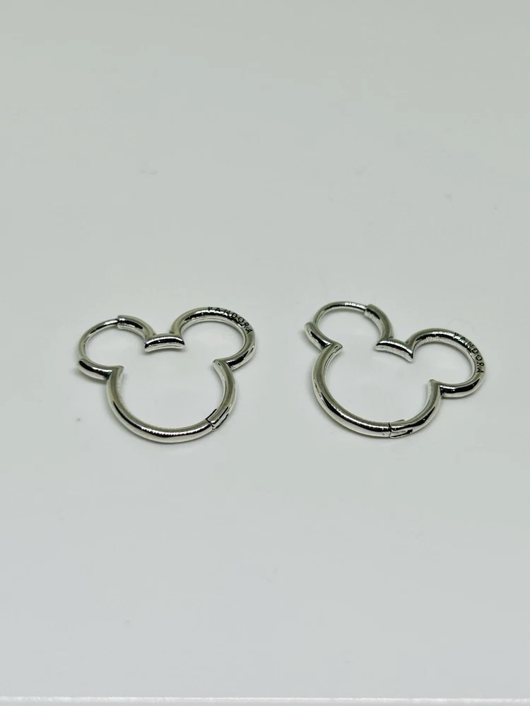 100% Authentic PANDORA Disney Mickey Mouse Silhouette Hoop Earrings S925 Sterling Silver New ALE New with tag and dust bag please look at all the photos