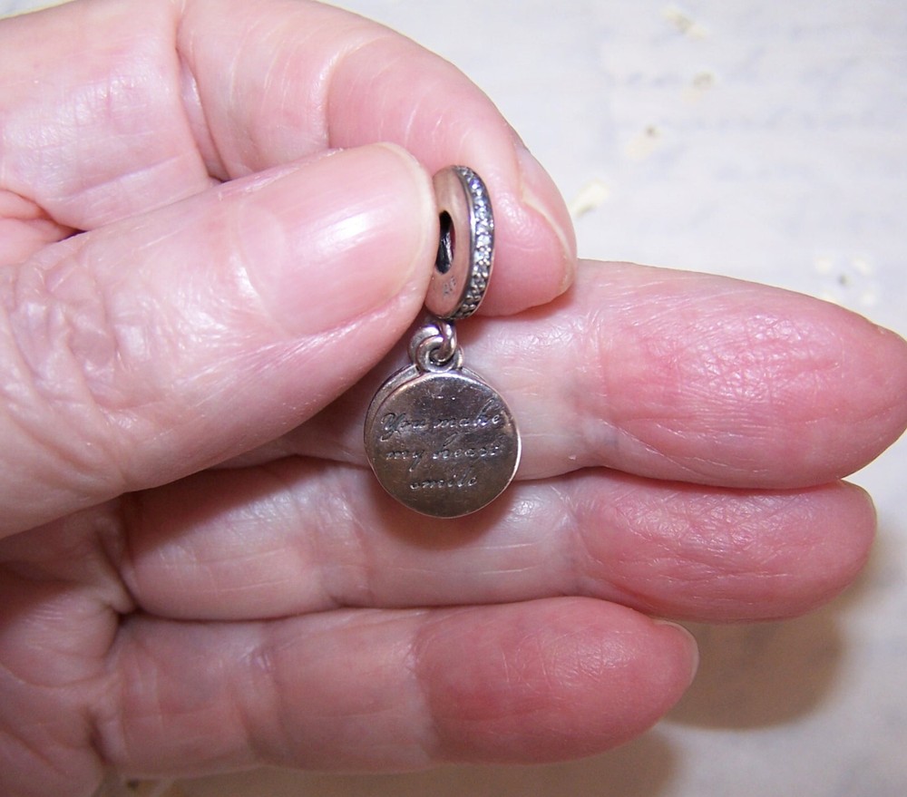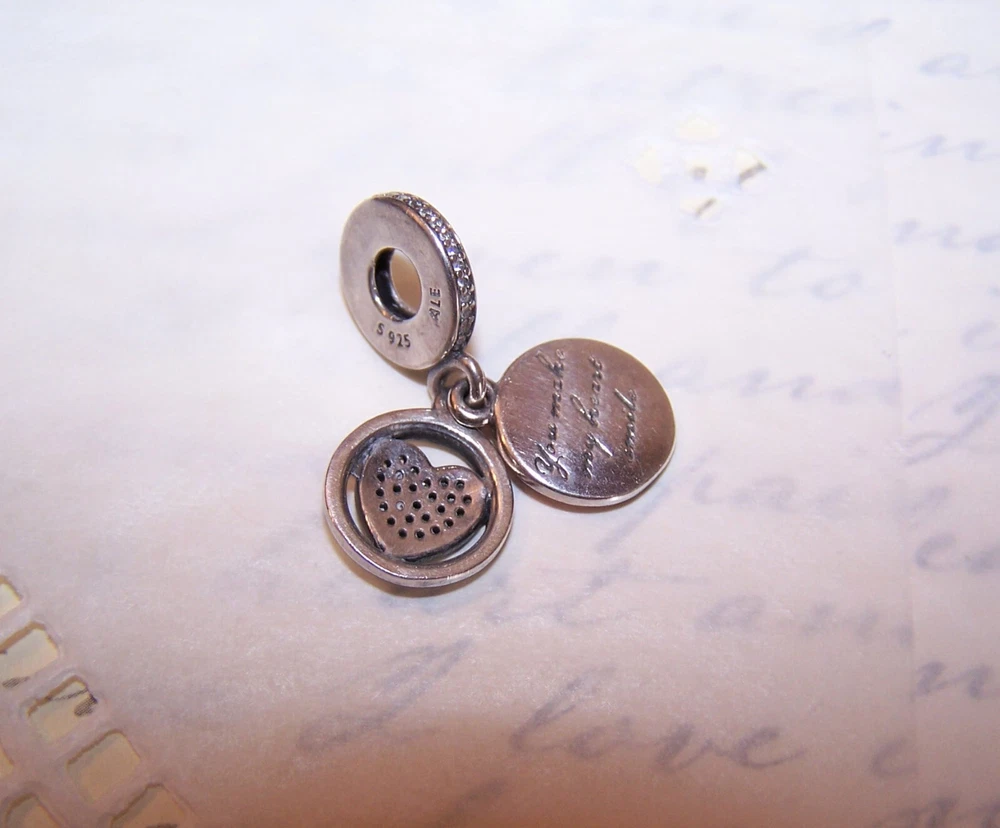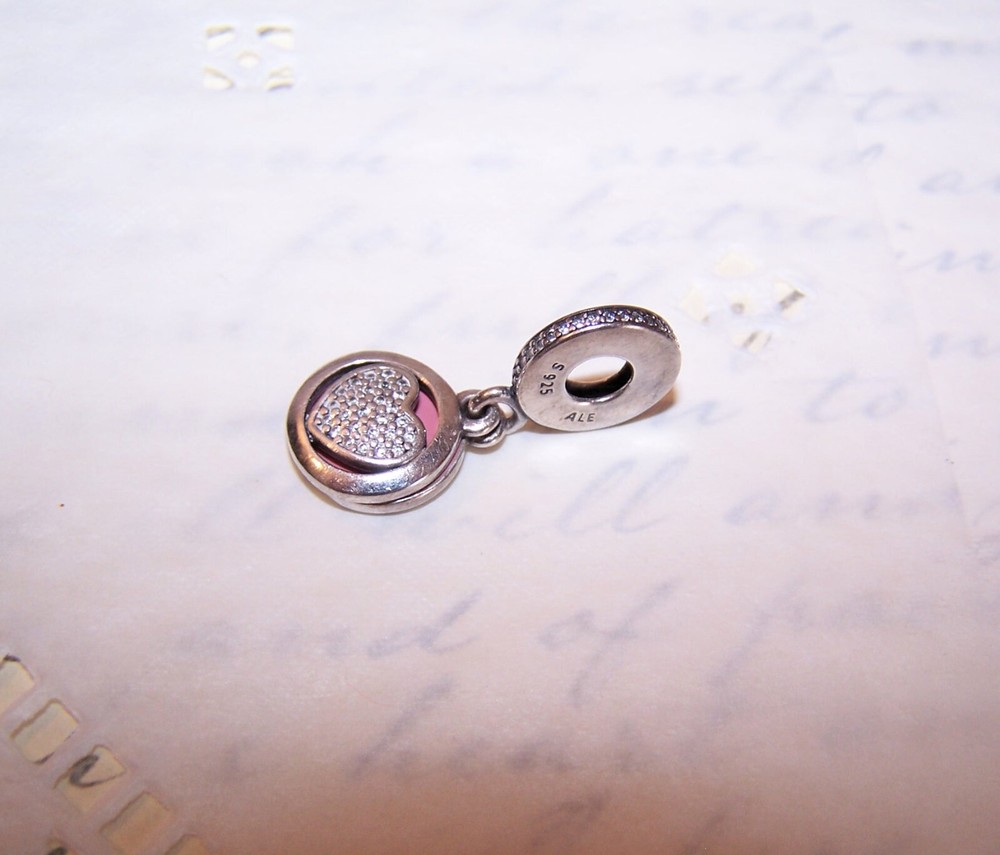 Vintage PANDORA Sterling Silver Pink Enamel Devoted Heart Dangle Charm - 792149EN Up for offer now: From PANDORA, a Sterling Silver and enamel dangle charm with clear cz accents on the top round. The charm has 2 drops - a pink enamel round (reverse reads You Make my Heart Smile) and a CZ round (with heart). First photo is a Pandora stock one, the rest are of the charm you will receive. Great condition. Guaranteed genuine - from a jeweler who went out of business. No box - no papers - you get just the charm. EBAY/Rob Postage quoted for this item on its own INCLUDES insurance. If purchasing more than 1 charm, just stack the orders up and don't pay when hitting CHECKOUT. I'll combine postage/insurance to the proper amount and send back a revised invoice. BUY IT NOW ! ! ! ******************************** TERMS ITEM CONDITION * I have been doing EBAY for 24 years now and I know what I am doing when it comes to selling. I describe my items accurately, have multiple pictures on each of my listings so a "surprise" upon receipt is unlikely. However, if something is amiss, I will remedy the situation as quickly as possible. RETURNS/REFUNDS * Any return is to be made within 3 days after Buyer's receipt of item. Please notify ME (not EBAY) asap if you intend on making a return. PAYMENT METHODS ACCEPTED * PayPal - Any refund made will be less the amount Paypal keeps as a transaction fee. (New as of 11/24/19). SALES TAX * EBAY now collects sales tax on most states - this will be automatically added to your invoice by EBAY. SHIPPING USA As mentioned in the shipping area. COMBINED SHIPPING Yes, I will combine shipping for the best price - just do not pay and let me correct the invoice. If you pay, I can no longer refund the overage. PACKAGING * I package my items very well for transit so please please do not worry - your package will arrive intact. My home is smoke and pet free! OVERSEAS SHIPPING * The USPS is starting to change overseas delivery rules once more so if you wish to purchase an item, please contact me before you do so so that I can give you an exemption of the listing. RIGHT TO SELL * I sell on other sites so if you try to find my listing and can't, it means it has sold. DELIVERY * I process mail 2 to 3 times a week so once payment is received, Buyer's package will ship ASAP - usually 1-2 days after payment is received. If there is a delay, I will let BUYER know. FINAL NOTE * EBAY now processes all refunds so if you wish to make a return, just contact them to start the process. Thanks for visiting!