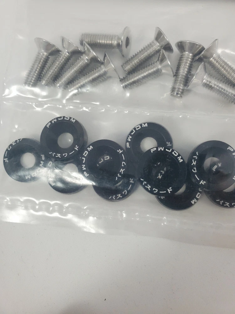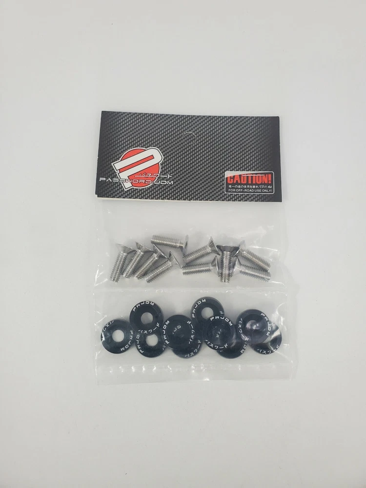 PASSWORD JDM Black Aluminum Fender Washers 10 PC Fender Wash Engine Dress Up Kit