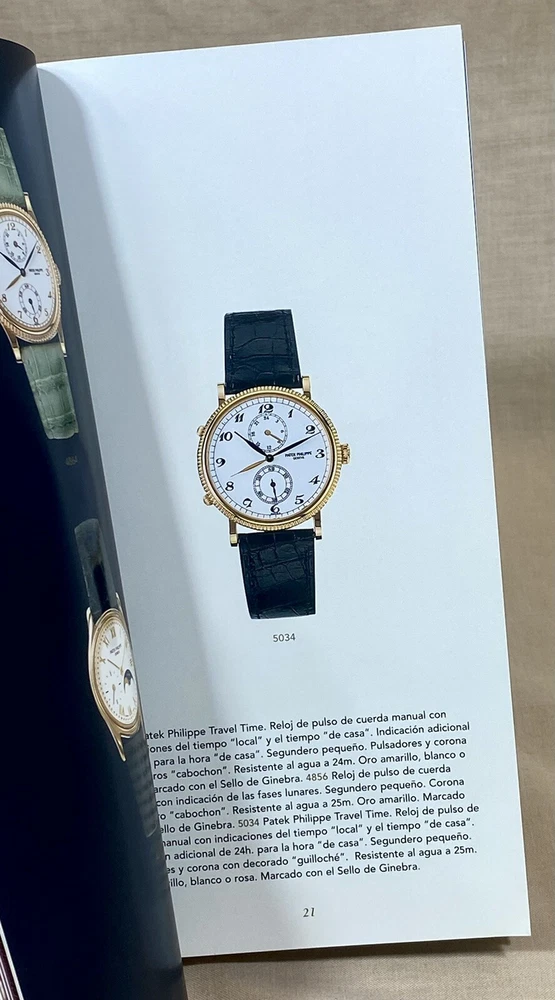 Patek Philippe Genuine Watch Catalogue With outer protective case Year: 1997 Language: Spanish Pages: 131 Please Note: Item is slightly marked (see photos) Measure: 10,5 x 21 cm Private Collection ORIGINAL ---------------------------------- These products are being sold for Collection purposes ONLY. I am Member of WTA since 1998 I am not affiliated with Patek Philippe . I am not an official Patek Philippe Dealer Questions : Please ask us all the questions you have before bidding. ------------------------------------------------- We sell products that might have been used or otherwise known as "take-offs". Some parts are like new or very gently used, and others show signs of wear and may need to be cleaned or polished. Please see pictures for more details. We try to take pictures of any defects the item may have. If you have any additional questions, feel free to ask us and we will get back to you as soon as possible. Customer Service If for any reason you have an issue with our product, please choose “Contact Seller” via eBay before leaving negative feedback or opening a case. We promise to resolve any issues as soon as possible. Positive feedback and 5-star seller ratings are extremely important to us as we are looking to provide outstanding products and services to our customers. Returns We reserve the right to charge a 10% restocking fee on all returns. Shipping and handling charges are not refundable. The buyer is responsible for the return shipping fee. Shipping We typically ship orders Monday through Friday (except for Holidays) within 3 business days of receipt of cleared payment. Please make sure your shipping address is correct before sending payment. All orders are shipped with a tracking number. You will receive and email with it as soon as your order ships. Please allow a few extra days for delivery if there is a weather problem. IMPORTANT NOTE FOR INTERNATIONAL BUYERS All our goods are shipped from Spain, but we are a UK based eBay shop, sales to the European community might be subject to VAT. Please see the link below: VAT on eBay purchases for EU buyers | eBay.com BUYERS OUTSIDE THE EUROPEAN UNION: The tariffs, duties and import taxes are not included in item price or shipping charges. These charges are the responsibility of the buyer. Refer to the customs authorities of your country to inquire about these costs before bidding on an item or buying it. These fees are usually charged by the carrier or when the buyer takes the item and should not be confused with additional shipping costs.