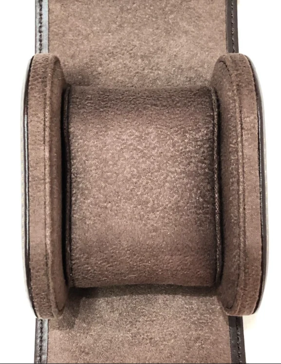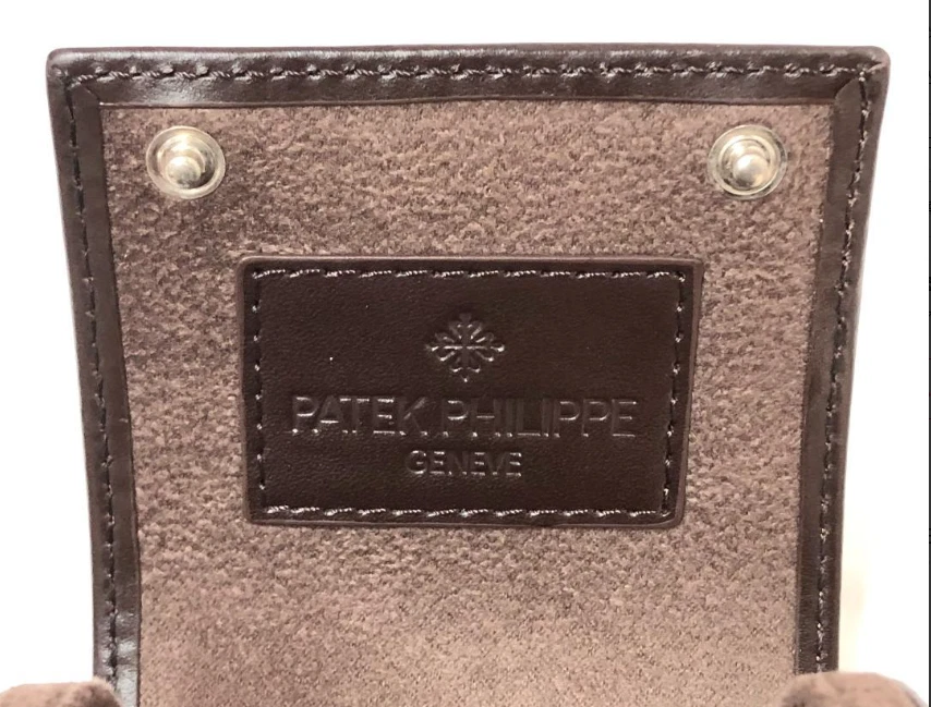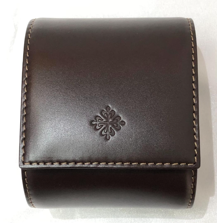 Crafted with the finest leather in a sophisticated dark brown hue, this Patek Philippe travel watch box is an elegant solution for safeguarding your cherished timepiece. The luxurious feel and impeccable craftsmanship reflect the Swiss quality synonymous with the Patek Philippe brand, ensuring your watch is cradled in comfort and security. The travel pouch is designed with a single watch in mind, providing a snug fit that protects against dust, scratches, and the rigors of travel. Despite its luxurious appearance, the design remains functional, allowing for easy transportation and keeping your watch a constant companion on your journey.