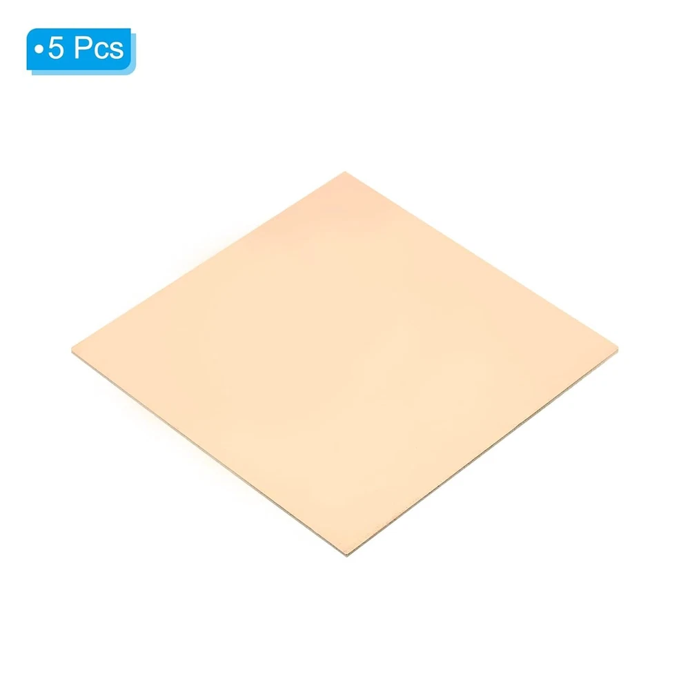 PATIKIL Copper PCB Board, 5Pcs 10x10cm Single Sided Copper Clad Circuit Board Laminate Blank PCB Copper Pads Prototype Board 1.5MM Thickness Fiberglass Square Product Details Package Dimensions : 5.51 x 4.09 x 0.67 inches; 4.23 ounces Manufacturer : PATIKIL Product Name: PCB Copper Clad Board; Dimension : 10*10cm / 3.94*3.94 inch(L*W); Material : Fiberglass, Copper; Thickness : 1.5mm; Color: Copper Tone; Advantage: This is a blank square PCB board. The quality was fine—an even and clean layer of copper, and clean cuts . Very thick and durable. Significant etching of copper can be achieved using toner transfer printing and resist pens. Instruction: Mechanically supports and electrically connects electronic components using conductive tracks, pads and other features etched from copper sheets laminated onto a non-conductive substrate. Application: This copper clad laminate pcb circuit board is great for etch etching project. Its bottom plate is uniform in color and smooth in cutting. Great for making PCB circuit board, models, soldering rails. Widely used in product development, DIY experiments, maintenance, production, prototyping, etc. Note: The product may be slightly scratched or dirty during transportation, which will not affect its use. Our store has a variety of sizes to choose from. This copper clad laminate pcb circuit board is great for etch etching project. Its bottom plate is uniform in color and smooth in cutting. Great for making PCB circuit board, models, soldering rails. Widely used in product development, DIY experiments, maintenance, production, prototyping, etc.Specifications:Product Name: PCB Copper Clad BoardDimension : 10*10cm / 3.94*3.94 inch(L*W)Material : Fiberglass, CopperThickness : 1.5mmColor: Copper TonePackage List: 5pcs x square Copper PCB PadsAdvantage: This is a blank square PCB board. The quality was fine—an even and clean layer of copper, and clean cuts through the fiberglass. Very thick and durable. Significant etching of copper can be achieved using toner transfer printing and resist pens.Instruction: Mechanically supports and electrically connects electronic components using conductive tracks, pads and other features etched from copper sheets laminated onto a non-conductive: The product may be slightly scratched or dirty during transportation, which will not affect its use.
