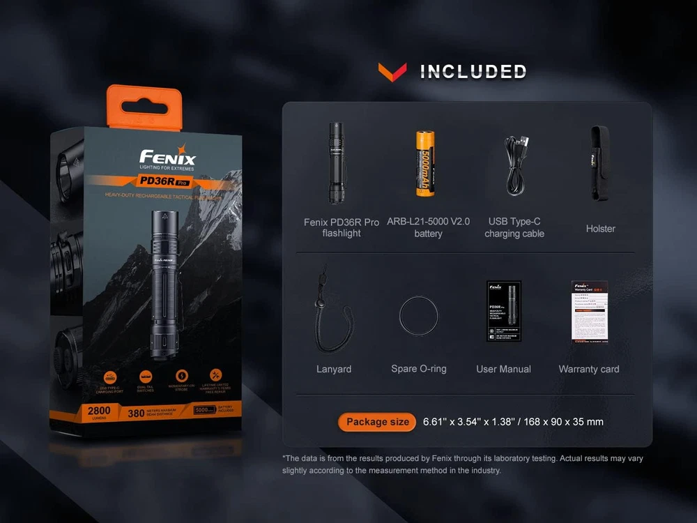 Store New Arrivals Add to Favorite View Feedback Contact PD36R Pro 2800 Lumen USB Rechargeable LED Tactical Flashlight with Charging Cable Carry Case Bundle Description Item model number EDB-FEN-PD36RPRO-BBX3 Light Source Type LED Power Source Battery Powered Battery Cell Composition Lithium Ion Country of Origin China Batteries Included? Yes Specification Met IP68 waterproof Special Features Rechargeable Batteries Required? Yes Product Dimensions 6"D x 1"W x 1"H Material Aluminum Number of Batteries 1 Lithium Ion batteries required. (included) Finish Type Aluminum Included Components Belt Clip Item Package Quantity 1 White Brightness 2800 Lumens Light Source Wattage 21 Watts Brightness 2800 Lumen Water Resistance Level Waterproof Item Weight 6 ounces Battery Description Lithium-Ion Runtime 50000 hours Special Feature Rechargeable Part Number FEN-PD36RPRO-BBX3 Color Black Wattage 21 Watts Batteries 1 Lithium Ion batteries required. (included) Finish types Aluminum 2800 Lumen LED tactical flashlight Dual switch operation Rechargeable battery included Two-way body clip Bundle includes EdisonBright charging cable carrying case Specifications Luminus SFT-70 LED with 50,000 hour lifespan Outputs Turbo: 2800 Lumens, 3.5 hours, 1250 ft (power automatically steps down as per device temperature) High: 1000 Lumens, 3.95 hours, 738 ft Med: 350 Lumens, 8.25 hours, 427 ft Low: 150 Lumens, 19 hours, 295 ft Eco: 30 Lumens, 42 hours, 131 ft Strobe: 2500 Lumens USB charging Dual Switch Operation High-strength Aluminum Body Premium type HAIII Hard anodized anti-abrasive finish Battery Included Two-way body clip Compact body design IP68 Waterproof rating (6.5 feet for 30 minutes) Inner waterproofing protects from water damage even with the dust cover removed Withstands 5 ft. drop on all sides Battery Included: Fenix ARB-L21-5000 V2.0 Rechargeable 5000mAh battery Compatible: ARB-L21-5000U and ARB-L21-4000P Size Length: 5.74 Inches Diameter: 1.1 Inch Weight: 5.96 Ounces Included Fenix PD36R Pro flashlight ARB-L21-5000 V2.0 Rechargeable Li-ion Battery Pocket clip USB Type C charging cable Lanyard Holster Spare O-ring User manual Bundle includes EdisonBright charging cable carrying case. ABOUT US We offer the best prices around on high quality products. Our E-store includes media such as books, movies, music and games while offering electronics, toys, sporting apparel, clothing, tools, general home, garden items and more. SHIPPING We are always working hard to ensure your package arrives as soon as possible. Please understand that some factors like weather, high postal traffic, and the performance of shipping companies are outside of our control. We offer free shipping to the lower 48 states and ship within 2 business days of payment, usually sooner. We do not accept P.O. Boxes. Please provide a physical address. For shipping outside of the continental USA, we only use eBay's Global Shipping Program.The item is shipped to KY and then sent to the rest of the world. International customers are responsible for all duties and taxes. Continue to check out in order to calculate costs for shipping the item to your country. Messages regarding eBay's Global Shipping Program MUST be directed at eBay EXCLUSIVELY. RETURNS We offer a 30-Day Return Policy on items which you are not completely satisfied with. You have the option for a full-refund or an exchange of the item. No returns are available on items shipped outside of the USA. PAYMENT We accept PayPal. CONTACT US This page content is yet to come Please ad us to your favorite seller and visit again later Thank You CUSTOMER SATISFACTION We try our very best to make sure every customer is completely satisfied. If there's a problem, message us! We're happy to help. WE ACCEPT Copyright © 2021 AutoDS. | All Rights Reserved