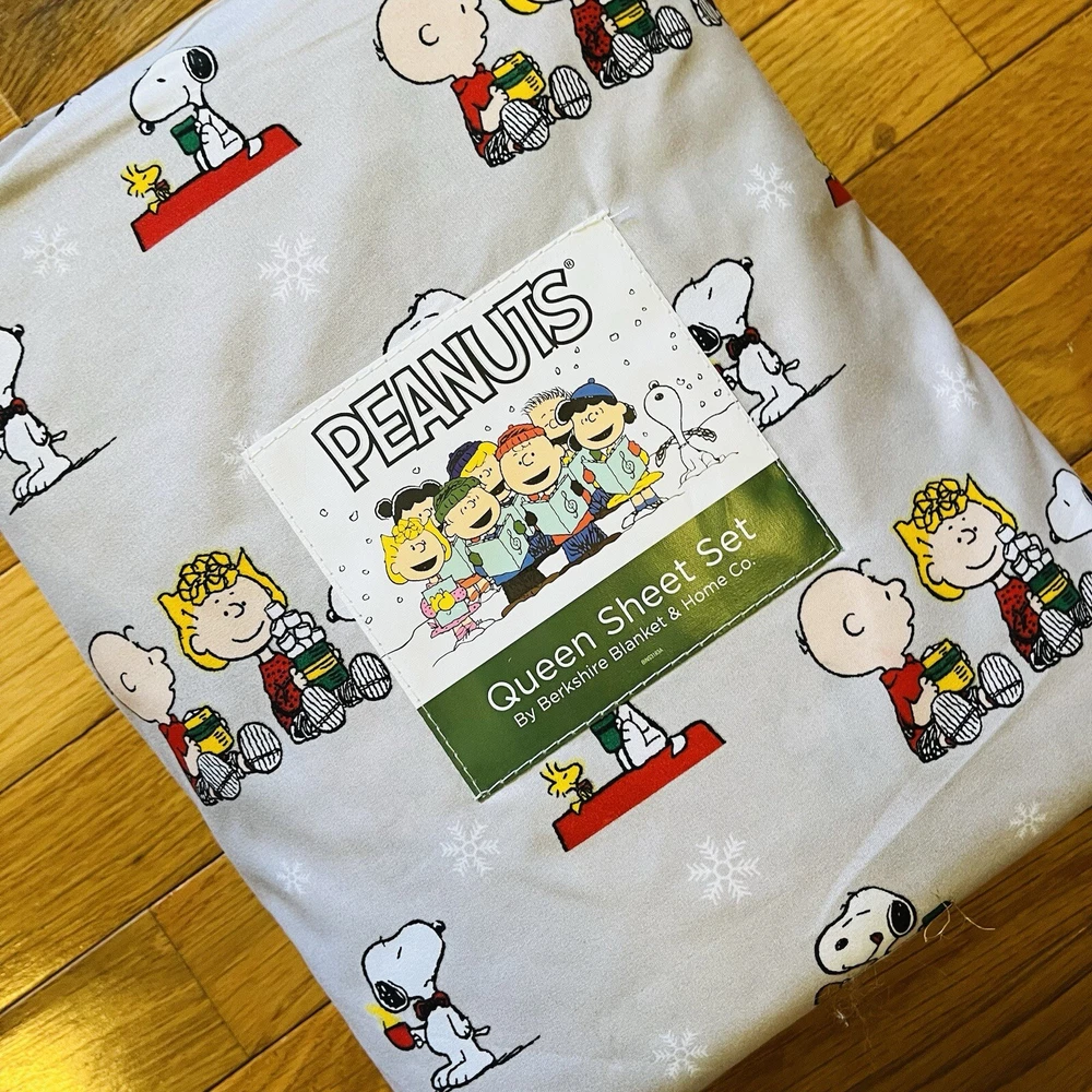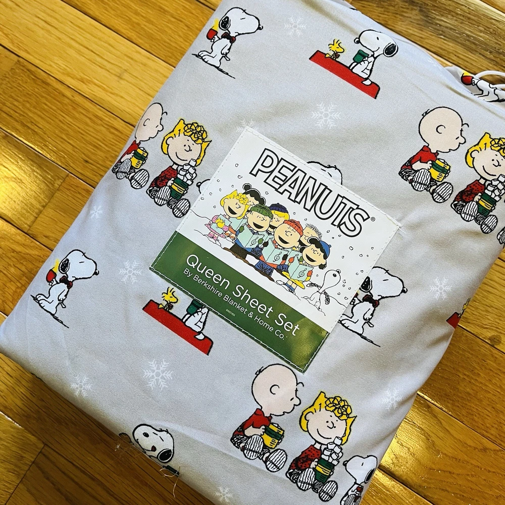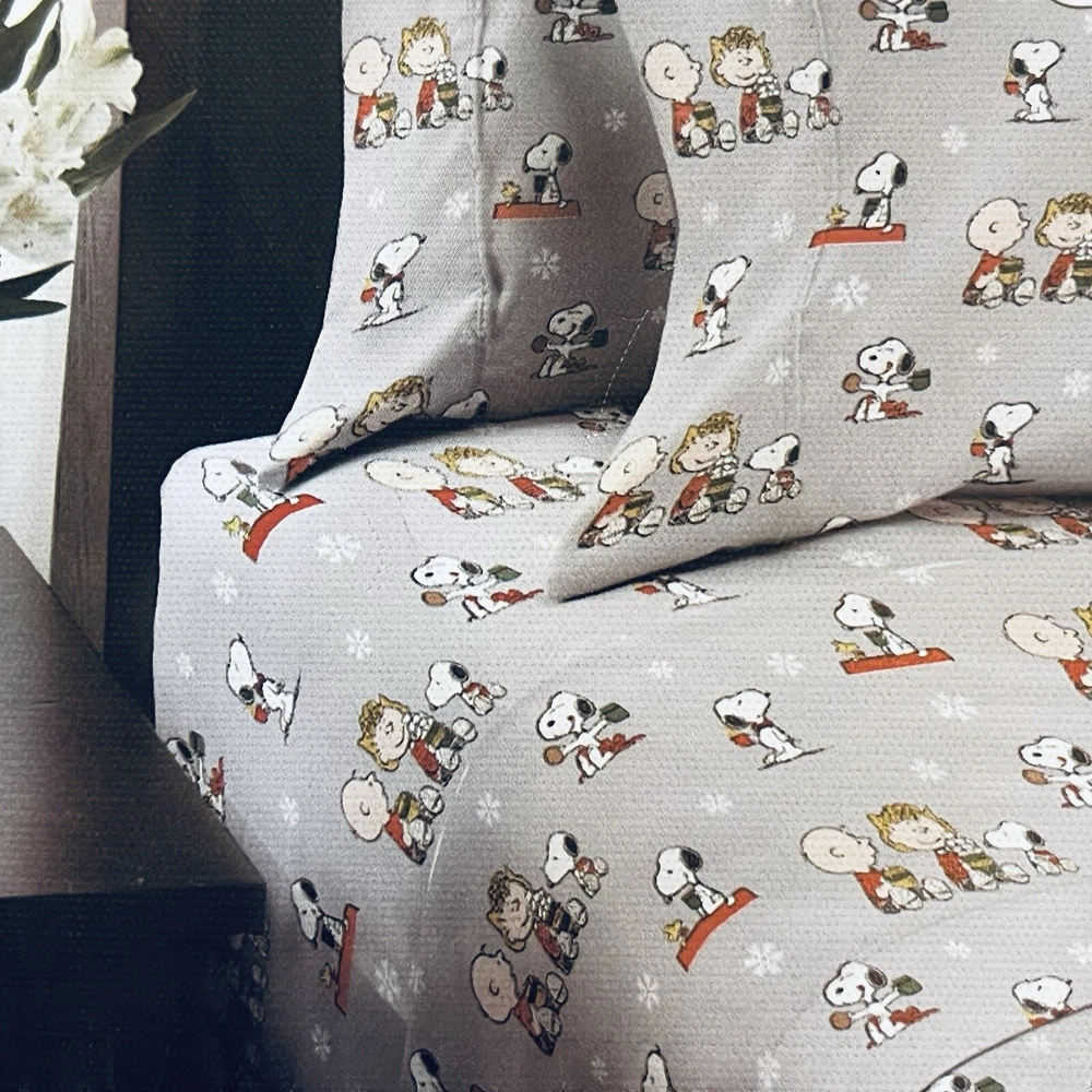 PEANUTS Christmas Queen SHEETS SET Snoopy Woodstock Charlie Brown Hot Chocolate