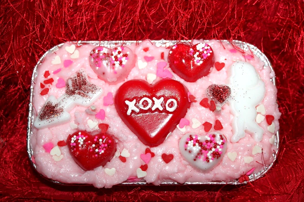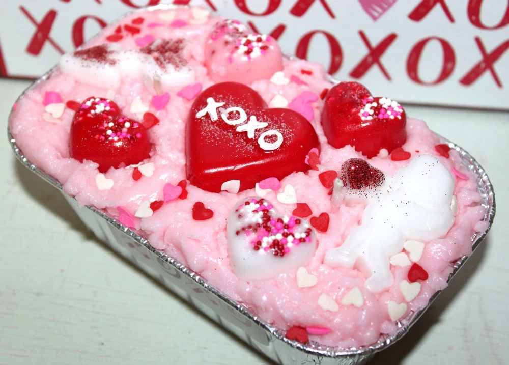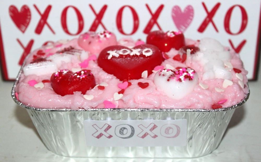 **** SHIPPING IS OFTEN CALCULATED HIGH WHEN PURCHASING MORE THAN 1 ITEM SO FEEL FREE TO MESSAGE ME FOR A SHIPPING QUOTE **** When combining purchases please click on "request total from seller" at checkout and wait for me to send you a invoice with combined shipping. If you are using your phone this option may not be available and if so just message me and I can make you a listing with everything combined and the correct amount on shipping. Thank You ;) ++++ If you want this candle in a different scent, please contact me for a scent change request. ++++ This is my handmade highly scented grubby loaf candle. It weighs approx. 1 lb. and is in an aluminum 5" bread loaf pan. It is scented to the max with SOUTHERN PECAN PIE. A fragrance that smells as scrumptious as it sounds! It's an amazing duplicate of the mouthwatering classic dessert of the American South. You can almost taste the creamy butter, Georgia pecans, and real whipped cream. It's a rich, super-sweet aroma not for the faint-hearted. Try it if you dare! I put a cupid, arrow, hearts, sprinkles, glitter and a XOXO heart in the middle. This is a perfect one of a kind Valentine's gift. Much prettier in person too. It is recommended that you burn your candle on a plate or in a bowl to catch any over spill. Candle will arrive in a cello bag tied with a homespun bow and labeled so it will be gift ready. International Buyers : Please contact me for shipping quote. Shipping I strive to ship within 48 hours of payment received not including weekends and holidays. I ship USPS Priority or Parcel Post and for the heavier orders I can ship Fed-Ex. I do offer USPS Flat Rate shipping as well. Insurance is the buyers responsibility. I am always happy to combine auctions to save you money on shipping fees and I only change actual shipping costs. Please email with any shipping questions or quotes if needed. Thanks for stopping by! Please do come back again soon~ WARNING Burn within sight. Keep away from flammable objects. Keep away from children and pets. Burning Instructions: Trim wick to 1/4" before lighting. Keep candle free of any foreign materials including matches and wick trimmings, Only burn the candle on a level, fire resistant surface. Do not burn candle for more than four hours at a time. Stop use when only 1/4" of wax remains. *** Please note I do not accept returns for used merchandise. Must be returned in same condition as received. *** RETURNS ARE ONLY ACCEPTED IF ITEM HAS BEEN MISREPRESENTED