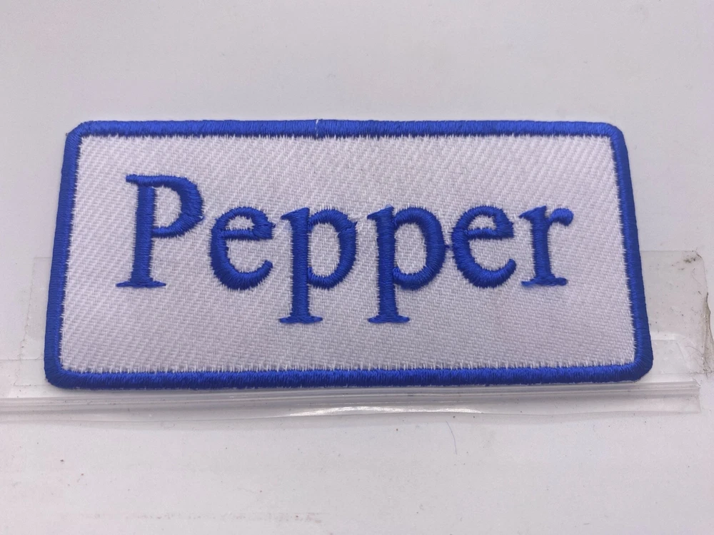 THIS AUCTION IS FOR A NEW EMBROIDERED IRON/SEW ON NAME PATCHES) ( SIZE 1-1/2 INCHES TALL AND 3-1/2 INCHES WIDE) PEPPER (BORDER AND NAME EMBROIDERED ) (AVAILABLE IN BLUE ON WHITE RED ON WHITE AND WHITE ON RED (NEW) SHIPPING FOR THIS ITEM WILL BE (FREEEE IN THE U.S.A.) PLEASE PAY THROUGH EBAY. ITEMS WILL BE SHIPPED 1 BUSINESS DAY AFTER RECEIVING PAYMENT. THANK YOU FOR LOOKING! ! CLICK HERE TO Save as Favorite Seller Most items will be shipping in a regular letter envelope and will NOT have a tracking number. All items will be shipped the next day, if you pay before 10:00am pacific time your package will ship same day. If you pay on Saturday you package will ship on Monday unless it is a holiday it will ship on Tuesday. I ship 6 days a week. by 10:00am pacific time. INTERNATIONAL BIDDERS SHIPPING FOR THIS ITEM WILL BE $3.00 FOR THE FIRST PATCH OR SET AND .25 FOR EACH ADDITIONAL PATCH. THANK YOU FOR WATCHING <div style="text-align:center"><a style="text-decoration:none" href="http://mostpopular.sellathon.com/?id=AC583636"><img src="http://www.sellathon.com/Resources/Images/countercredit.gif" border="0"></a></div>