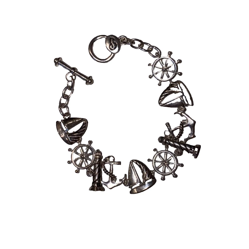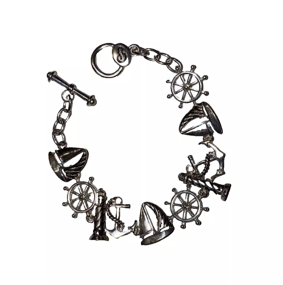 PERIWINKLE by BARLOW NEW Periwinkle by Barlow Coastal Collection silver tone nautical anchor, sailboat, lighthouse wheel charm style bracelet. Toggle closure with P logo on the clasp. Your jewelry will arrive in an organza drawstring gift bag. 723759-723760, 723895-723896