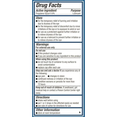 Preservative Free Lubricating Eye Drops is a triple action formula that hydrates, restores and protects dry eyes for long-lasting dry eye . Preservative Free contains the active ingredient propylene glycol to lubricate and soothe dry eyes, and is supported by hyaluronate, which is naturally occurring in tears, to provide long lasting hydration. This unique formula enhanced with lipid nanodroplets provides superior tear evaporation protection versus other leading drops^. Preservative Free comes in a convenient 10ml multi-dose bottle, perfect for on-the-go use to keep your eyes comfortable and moisturized wherever your day takes you. ^In vitro data; versus Blink Triple Care, IVIZIA, Refresh Optive Advance, Refresh Optive Mega-3, Hydration and Complete *Not a rewetting drop Triple-Action Dry Eye : Preservative Free Eye Drops hydrate, restore and protect dry eyes for long-lasting Long-Lasting Hydration: Preservative Free lubricating eye drops are formulated with Hyaluronate, a moisturizer that occurs naturally in tears, to support extended hydration Tear Evaporation Protection: This unique formula enhanced with lipid nanodroplets provides superior tear evaporation protection versus other leading drops^ Preservative-Free Formula: The gentle, preservative-free formula is ideal for sensitive eyes Trusted Brand: is a trusted name in eye care, recommended by eye care professionals for its effective and reliable Convenient Size: The 10mL oz bottle is perfect for daily use, offering you triple action dry eye at your fingertips Lens Friendly*: safe for use with soft lenses