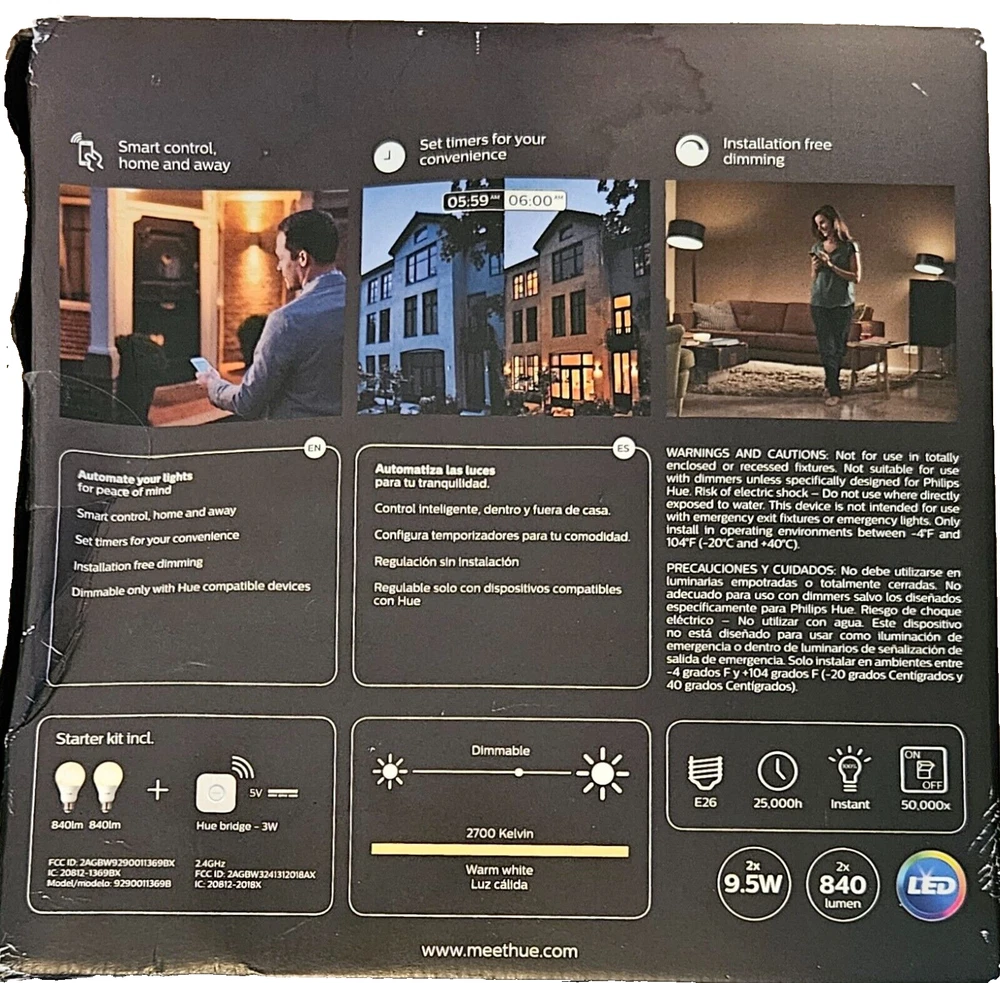 Enhance your home lighting experience with the PHILLIPS Hue Personal Wireless Automated Lighting Starter Kit. This kit includes everything you need to get started with your smart lighting journey. With 800-999 lm brightness and a warm color temperature of 2500-3000 K, this LED bulb provides ample light to brighten up any room. The bulb shape code is A19 and the bulb wattage is 9.5W, which ensures that you get the best lighting experience. This smart light bulb is compatible with various smart home systems like Apple HomeKit, Philips Hue, Google Assistant, Amazon Alexa, Samsung SmartThings, and Nest. With a bulb life of 25,000-29,999 hours, you can enjoy long-lasting brightness.