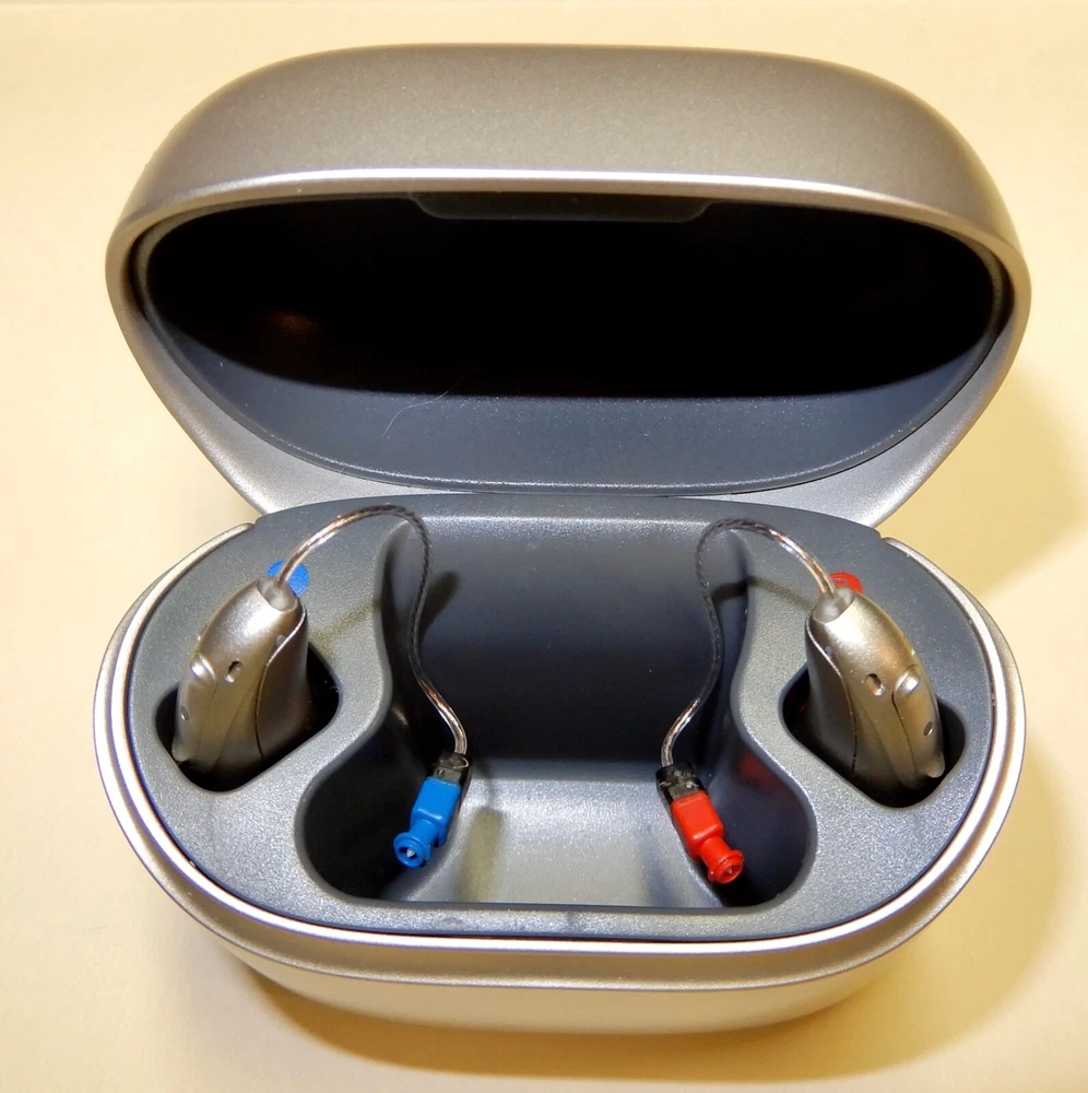 PHONAK LUMITY L30-R WATERPROOF Bluetooth Rechargeable RIC Hearing Aides. Cleaned and Sanitized. PHONAK, Waterproof AUDEO LUMITY L30-R, Bluetooth, Rechargeable Hearing Aides. Waterproof IP68 rating for fresh water to a maxim depth of 1.5 meters for up to 30 minutes. RIC Receiver in Canal. These Lumity hearing aides have the latest, most up to date, advanced listening technology and will provide the most filters and programs, making these devices ideal for those with active lifestyles. The Audeo Lumity 30 will deliver quality sound in any environment. They are constructed with superior bluetooth connectivity. Excellent condition. Included: Left and Right Lumity Audeo L30-R hearing aides, Charging case, Chord and plug, Cerushield wax trap disc, cleaning tool and assorted ear buds, Zippered Travel Case. Warranty expires 2026 Exceptional set, ready for programming to new user's exact hearing requirements. Color: Silver Size 1M Receiver Wires Free Shipping Please Note : It is important to complete a hearing examination from a qualified audiologist prior to any transaction and to follow up with device programming based on a professional hearing evaluation.