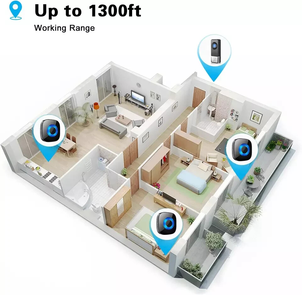 Item specifics Condition New: A brand-new, unused, undamaged item in its original packaging about the conditio Brand Does not apply Type Does not apply Item model number CWUSW-2T3-004 Part Number CW001B Style modern Power Source AC/DC Material ABS Battery Cell Type Alkaline Switch Style Remote Item Weight 14.9 ounces Batteries 1 A batteries required. (included) Batteries Included? Yes Batteries Required? Yes Usage Reminder function; Suitable for homes, offices, hospitals Special Features Adjustable 58 Tones and 5 Volume Levels (Mute Mode included); LED Installation Method Self-Adhesive or Screw-In Is Discontinued By Manufacturer No Package Dimensions 7.48 x 3.98 x 3.35 inches Size 2 Buttons + 3 Receivers UPC 313048577572 Description Item model number CWUSW-2T3-004 Part Number CW001B Style modern Power Source AC/DC Material ABS Battery Cell Type Alkaline Switch Style Remote Item Weight 14.9 ounces Batteries 1 A batteries required. (included) Batteries Included? Yes Batteries Required? Yes Usage Reminder function; Suitable for homes, offices, hospitals and other areas Special Features Adjustable 58 Tones and 5 Volume Levels (Mute Mode included); LED flashing for the elderly and hearing impaired; waterproof Installation Method Self-Adhesive or Screw-In Is Discontinued By Manufacturer No Package Dimensions 7.48 x 3.98 x 3.35 inches Size 2 Buttons + 3 Receivers šćLong Wireless Rangeć- Our wireless remote button is adopt high-frequency electronic technology to control doorbell chime. The range of wireless doorbells for home extend over 1300ft(400m) in open space. The wireless door bell has strong anti-interference features and you can pair it one-to-one, and NO need to worry about signal connecting wrongly with the next door. šćWaterproof & Easy to Installć - The door bells & chimes wireless is made of high-quality ABS material, has strong IP55 waterproof function, working on -4°F to 140°F. Easy Installation: plug doorbell receiver in the socket and adhere the transmitter to the wall via Double-sided tape or Screws-in. šćMultiple Optional Ringtone & Mute Modeć - PHYSEN classroom doorbell receiver features 58 chimes and 5 level adjustable volume(0 dB to 110 dB) to meet your needs for different occasions. Bright LED flash is suitable for the elderly and hearing impaired. The indoor chime can remembers your last melody and volume level after closing it. No need to reset the previous settings, really save your time. šćExpandable and Multi Useć- Wireless doorbell system can add more receivers or door bell ringer buttons as required, choose 1 button with 1 receiver or 2 buttons with 2 receivers or 2 buttons with 3 receiver sets, etc. Multiple doorbell chime can be configured to ring with different ringtones for your front door and back door. You will never miss your visitor! šćWireless Doorbell Kit and ć- Door Bell Kits Contains: 2 wireless transmitters and 3 plug-in smart doorbell receivers, double sided mounting tape, anchors, screws and A23 battery included. We will offer 18 months and 24 hours customers service. Please feel free to if you have any questions. Product Description Loud Enough and with Bright LED Indicator for the Hearing Impaired -PHYSEN UPGRADED WIRELESS DOORBELL 2 remote push buttons and 3 plug-in receivers for you to DIY your house and you can program each push button to a different tone so you can know which door is someone at. YOU WILL NEVER MISS ANY VISITOR! 58 MELODIES & 5 VOLUME & MUTE MODE Our doorbell receiver offers 58 melodies for you to choose. At the same time, you can also pair different ringtones for different stations so that you know which door is ringing. 5 levels of adjustable volume from 0-110 dB, the maximum volume of 110 dB can be suitable for the hearing impaired or the elderly, the minimum volume of 0 dB can be suitable for babies or night. Waterproof Doorbell Button The impressive IP55 dustproof and waterproof rating and the approved working temperature range of -4ā to 140ā make the push button tough enough to withstand almost any outdoor conditions. The 23A, 12V battery has an extremely long life of up to 3 years. And since the extremely low power consumption, you don't have to replace batteries frequently. Easy to Set Up You don't need any electric wiring. Extremely handy and easy to install, just plug the receiver into an electrical outlet and the transmitter use a battery(included). 2 way installation: screws and double-sided adhesive tapes included for easy be fixed. Wireless Range 1300 ft 1000 ft 1300 ft 1300 ft Volume Levels 0-110dB 0-110dB 0-110dB 0-110dB Melodies 58 58 58 58