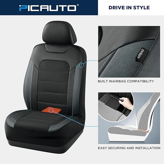202-USC-PA-721-24 Upgrade your car's interior with these premium leather and air mesh seat covers from PIC AUTO. Designed to fit full set and bucket seats with headrest, these covers are perfect for any automotive enthusiast. The black and gray color combination adds a touch of elegance to your vehicle's interior. With features like airbag friendliness and a one-year manufacturer warranty, these seat covers are a must-have for any car owner. Made from high-quality mesh material, they are durable and easy to clean. Includes Headrest covers. PIC P AUTO Car Seat Covers, Premium Leather and Air Mesh Automotive Sports Seat Covers, Two Front Set, Airbag Compatible Universal Fits Most Cars, SUVs, Trucks and Vans (Black & Gray) MSRP $39.99 NOW YOU SET THE PRICE!!!!!!!! We have set the Manufacturer's Suggested Retail Price as our standard price. This makes a nice donation without costing you anything above the standard price of this unit. In other words, the money that would usually go to a store is now going to the animals. But if you think that is too much, we still appreciate you. WE want you to be happy too. So you set the price. Make a reasonable offer that you feel comfortable with and if we can do it, we will. And you will be our hero.