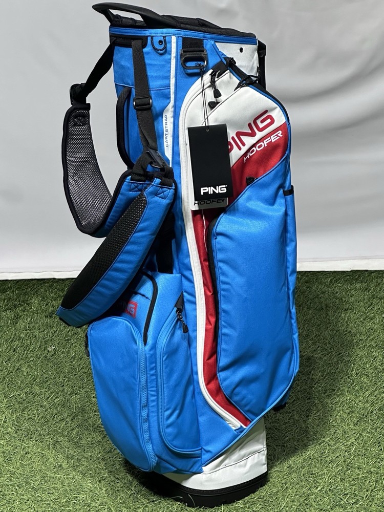 We are a reputable golf company that has been in business in St. Louis, Missouri since 1975. We have been doing this for 40 years because we do things right the first time. WE HAVE THE FASTEST SHIPPING ON EBAY! Don't believe us? Check out our Feedback. If you have questions, please feel free to ask. As always, thank you for looking. PING Hoofer 231 Stand Golf Bag COLOR: Blue / Red / White STYLE: Stand Bag DIVIDERS: 5-Way Divider CONDITION: New w/ Tags - See Pics (10/10) RAIN HOOD: Included The Ping Hoofer Golf Stand Bag has long been a favourite for golfers seeking a blend of practicality, comfort, and storage. This lightweight workhorse weighs only 5.5 lbs but offers an impressive 16 pockets, providing ample space to store everything you need for a successful round. Its 5-way top ensures easy organization, while a reconfigured bag bottom improves club removal by guiding your clubs to the correct segment and keeping them separated. The slimmer, stacked pocket design makes accessing your gear a breeze so that you can focus on your game. Features 5-Way Top : Offers easy club organisation and access. Weight : Lightweight at 5.5 lbs, ideal for carrying or cart use. Pockets : Equipped with 16 pockets for maximum storage versatility. Pocket Volume : Spacious 22L capacity for all your golfing essentials. Bag Bottom Design : Improves stability and facilitates smoother club removal. Ergonomic Top : Designed for comfortable and efficient handling. Leg Guards : Assist with leg separation for balanced carrying. Padded, Convertible Shoulder Straps : Provide adjustable, comfortable carrying options. Back Puck : Simplifies conversion to a single-strap setup. Zippered Rain-Hood Pocket : Ensures your rain hood is easily accessible and secure. Extra Storage Inside Apparel Pocket : Additional compartments for smaller items. Two Valuables Pockets : Includes one velour-lined pocket to protect delicate items. Apparel Pocket : Full-length zipper allows easier access to larger items. Zip-Off Ball-Pocket Panel : Customizable and easy to maintain. Magnetic Rangefinder Pocket : Ensures quick and secure access to your rangefinder. Cart-Strap Channel : Keeps the bag securely attached to carts without obstructing pockets. Material : Durable 300D polyester for lasting performance.