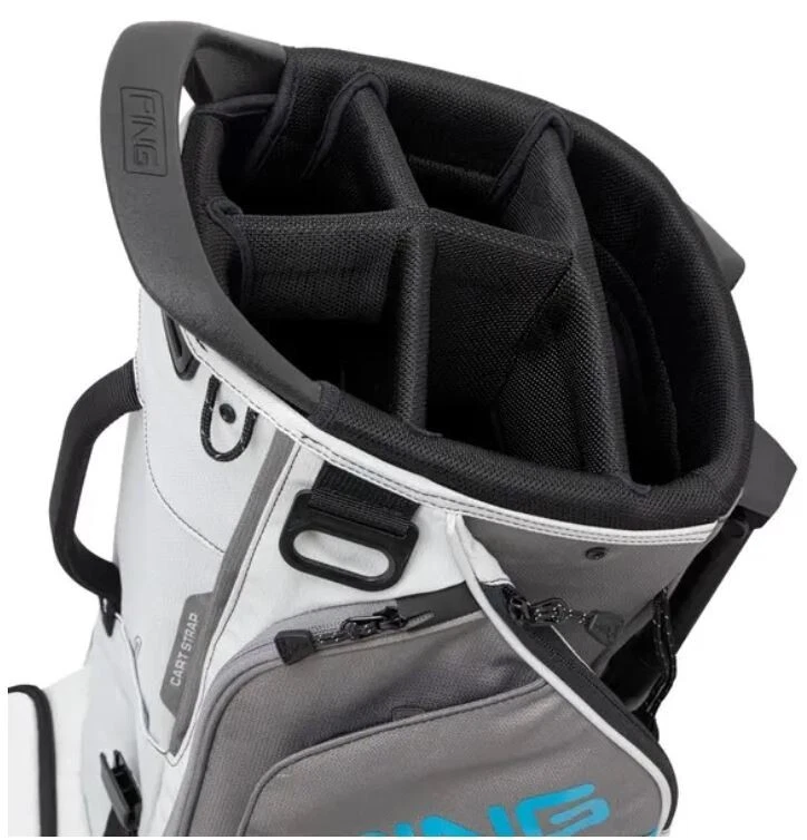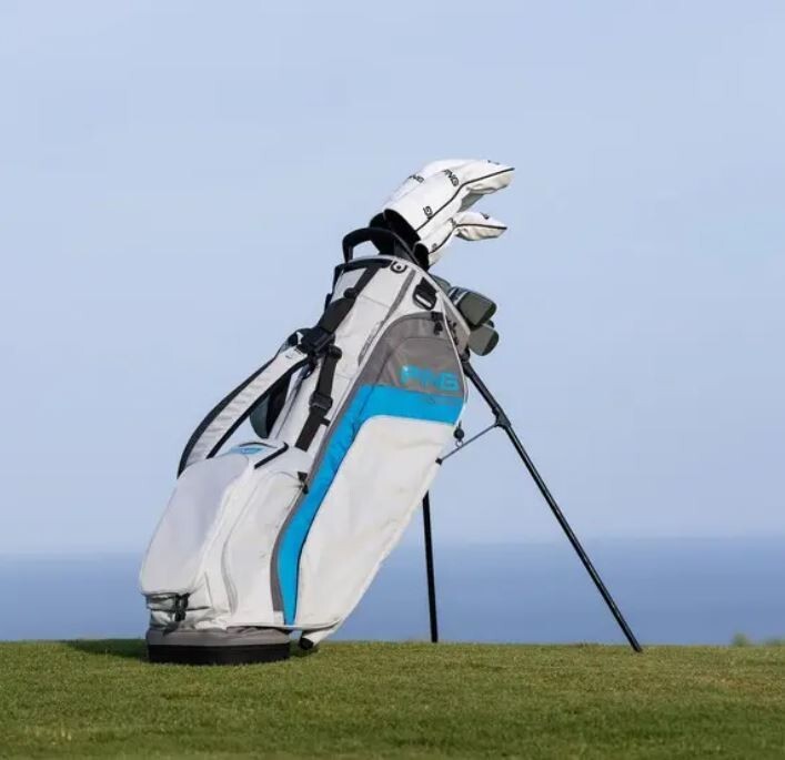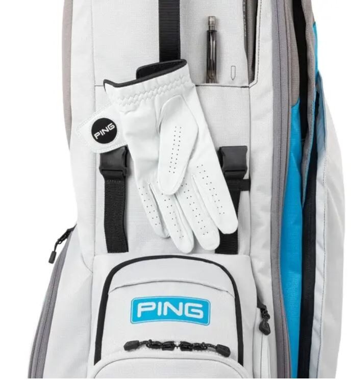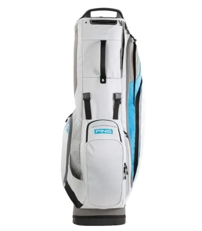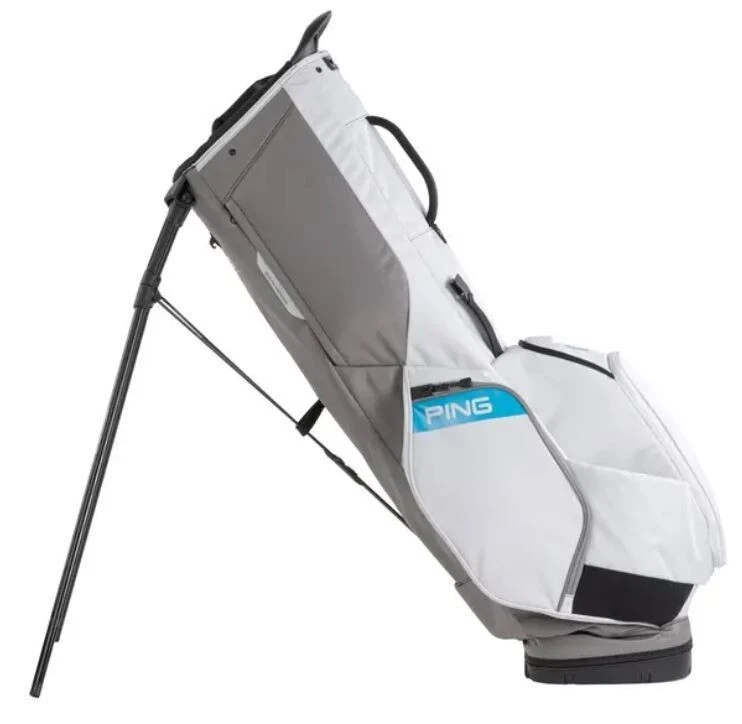 We are a reputable golf company that has been in business in St. Louis, Missouri since 1975. We have been doing this for 40 years because we do things right the first time. WE HAVE THE FASTEST SHIPPING ON EBAY! Don't believe us? Check out our Feedback. If you have questions, please feel free to ask. As always, thank you for looking. PING Hoofer 231 Stand Golf Bag COLOR: Light Grey / Blue / Graphite STYLE: Stand Bag DIVIDERS: 5-Way Divider CONDITION: New w/ Tags - See Pics (10/10) RAIN HOOD: Included The Ping Hoofer Golf Stand Bag has long been a favourite for golfers seeking a blend of practicality, comfort, and storage. This lightweight workhorse weighs only 5.5 lbs but offers an impressive 16 pockets, providing ample space to store everything you need for a successful round. Its 5-way top ensures easy organization, while a reconfigured bag bottom improves club removal by guiding your clubs to the correct segment and keeping them separated. The slimmer, stacked pocket design makes accessing your gear a breeze so that you can focus on your game. Features 5-Way Top : Offers easy club organisation and access. Weight : Lightweight at 5.5 lbs, ideal for carrying or cart use. Pockets : Equipped with 16 pockets for maximum storage versatility. Pocket Volume : Spacious 22L capacity for all your golfing essentials. Bag Bottom Design : Improves stability and facilitates smoother club removal. Ergonomic Top : Designed for comfortable and efficient handling. Leg Guards : Assist with leg separation for balanced carrying. Padded, Convertible Shoulder Straps : Provide adjustable, comfortable carrying options. Back Puck : Simplifies conversion to a single-strap setup. Zippered Rain-Hood Pocket : Ensures your rain hood is easily accessible and secure. Extra Storage Inside Apparel Pocket : Additional compartments for smaller items. Two Valuables Pockets : Includes one velour-lined pocket to protect delicate items. Apparel Pocket : Full-length zipper allows easier access to larger items. Zip-Off Ball-Pocket Panel : Customizable and easy to maintain. Magnetic Rangefinder Pocket : Ensures quick and secure access to your rangefinder. Cart-Strap Channel : Keeps the bag securely attached to carts without obstructing pockets. Material : Durable 300D polyester for lasting performance.