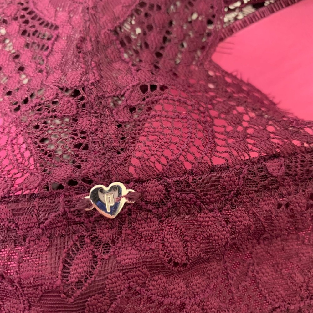 PINK Victoria’s Secret High-Neck Wine Colored Eyelash Push Up Bralette - Size Small D-DD Great preowned condition! High neck, padded bralette with adjustable straps and a little charm on the back. Padded. Polyamide/Elastaine blend 2P15 15-2755 4 oz Tags: sexy, burgundy, coquette, twee, sexy, romantic