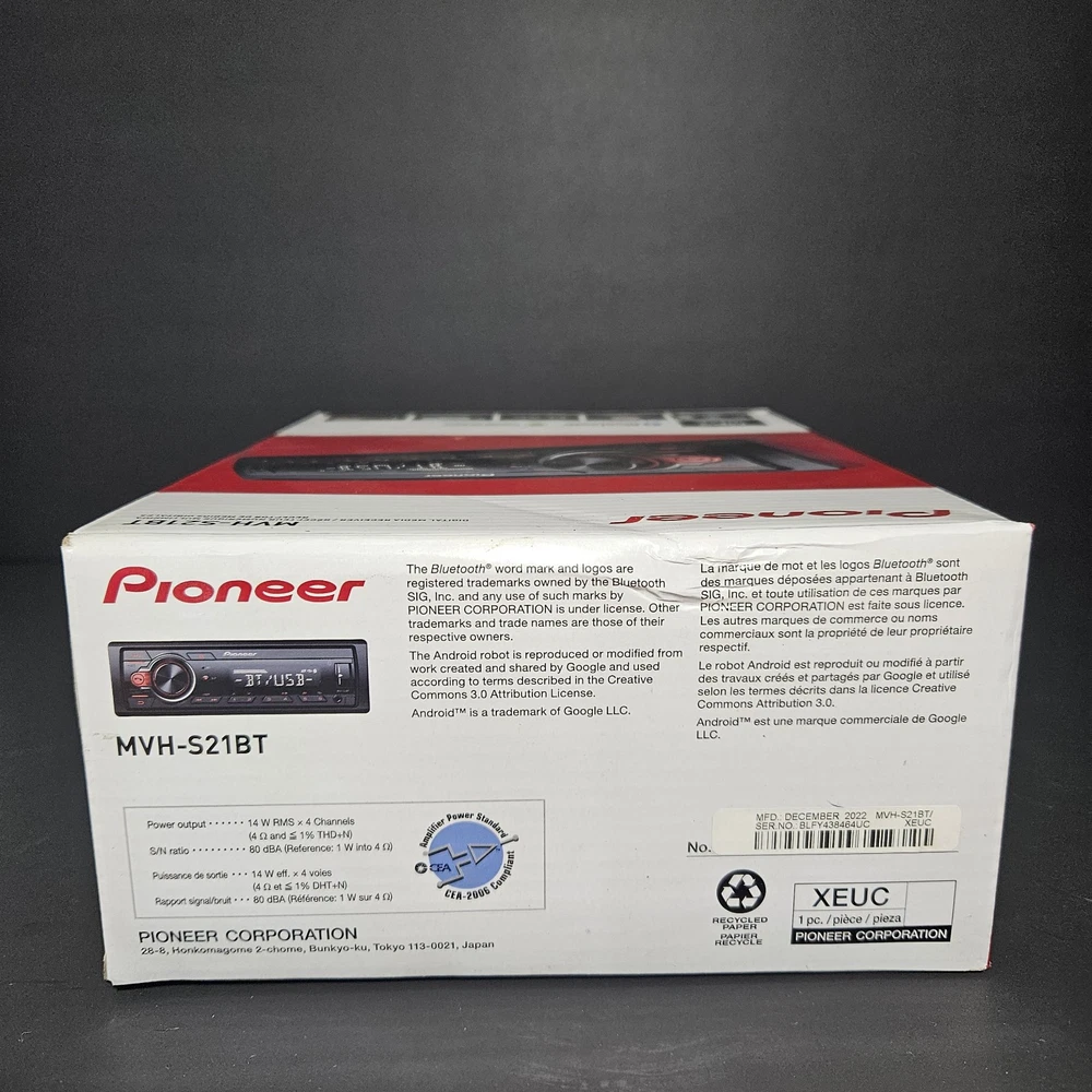NEW! only opened to verify contents. FAST SHIPPING! The Pioneer MVH-S21BT is a 1 DIN digital media receiver designed for car audio systems. It features built-in Bluetooth connectivity for hands-free calling and wireless music streaming. With FM radio capability, users can enjoy their favorite stations while on the road. This Pioneer car stereo receiver is manufactured in the United States, ensuring quality and reliability. Ideal for upgrading your vehicle's audio system, the MVH-S21BT provides a convenient and seamless audio experience while driving.
