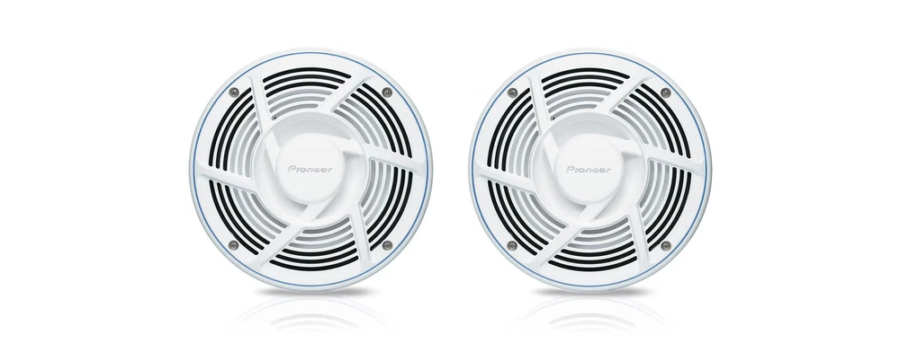 PIONEER CAR TSME650FS ME-Series 6.5 inch White Marine Coaxial Speakers (Pair) 2-Way, 200 Watt Max Power, IPX7 Rated, Sports Grille Design HIGHLIGHTS || * SIZE: 6.5 inch || * Design: 6.5-in 2-Way Coaxial System. || * Tweeter Design: 13/16-in (20mm) Dome. || * Tweeter Composition: Polyimide. || * Tweeter Magnet Composition: Neodymium. || * Woofer Composition: Injected Molded Polypropylene . || * Woofer Surround: Trex Plane. || * Woofer Magnet Composition: Ferrite. || * Warranty (must be purchased from an Authorized Pioneer Dealer): 1 Year. || MARINE || * Water Resistant: IPX7. || * UV Resistant: ASTM D4329. || * Grille Style: Black and White Sports Grilles Included. || INSTALLATION SPECIFICATION || * Max. Music Power (Nominal): 75W RMS / 250W PEAK. || * Frequency Response: 34 Hz to 23 kHz. || * Sensitivity (1W/1 m): 88 dB. || * Impedance: 4 Ohms. || * Crossover Frequency: 3.5 kHz. || * Mounting Depth: 2-3/8-in (60mm). || * Cut-Out Dimensions: 5-in Dia. (f127mm). || Pioneer ME-series speakers are protected from the effects of sun and water exposure, meeting both IPX7 and ASTM D4329 rated to achieve all-weather reliability. || Mica Reinforced IMPP monocoque cone with butyl rubber surround, constructed using an advanced in-mold bonding technique for superior water resistance while maintaining high quality, powerful sound. || The symmetrical motor design with high strenth suspension is optimized to provide stability, linearity and clear, low distortion sound reproduction. || Lightweight polymide (PI) tweeter diaphragm and uniquely shaped wave guide provides natural and clear vocals with wide dispersion. || The TS-ME650FS comes with two sleek modern grilles, one in black and the other in a white finish that cosmetically integrate seamlessly into marine interiors and cabin designs. ||